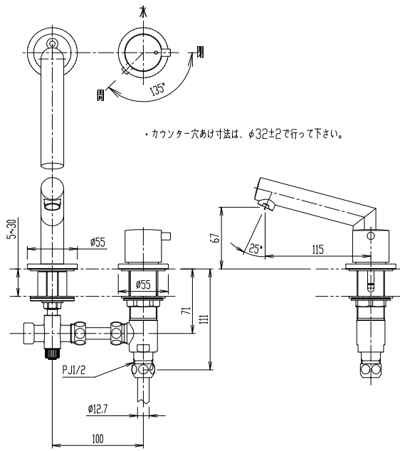 商品名:セパレート水栓 単水栓 ポップアップ排水対応タイプ