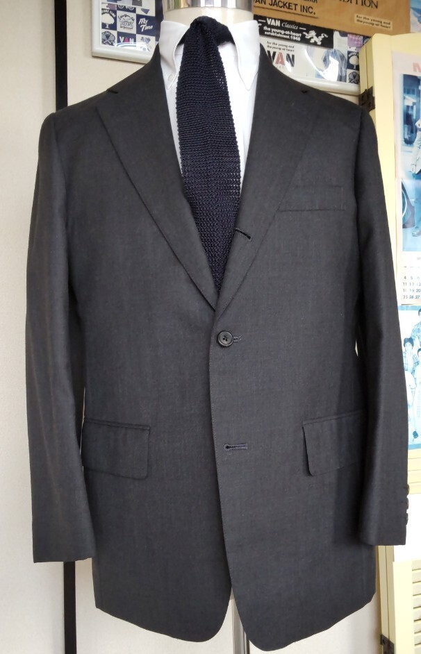 背抜き シングル3つ釦 段返り中1つ掛け フックベント 赤パイピング