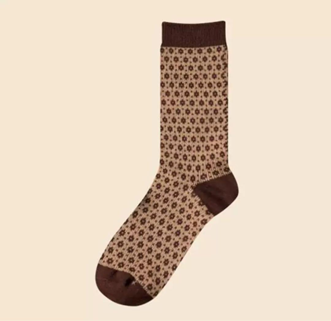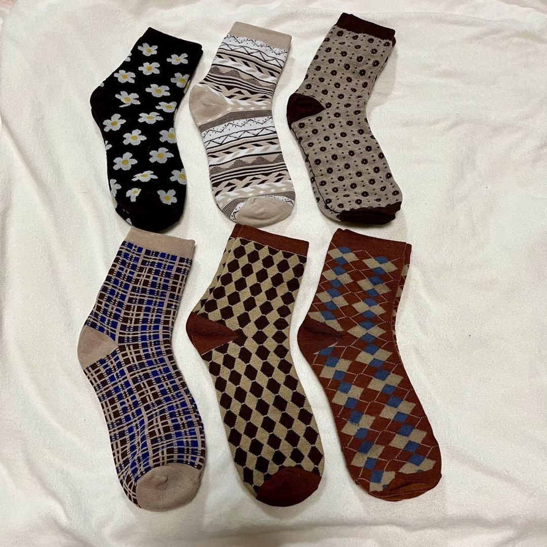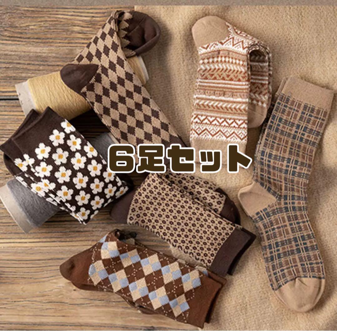 レディース 靴下 6色セットブラウン あったか セット 韓国 保温 吸水 厚め くつ下 ソックス 秋冬 花柄 幾何学模様 茶系 茶色 ベージュ おしゃれ かわいい