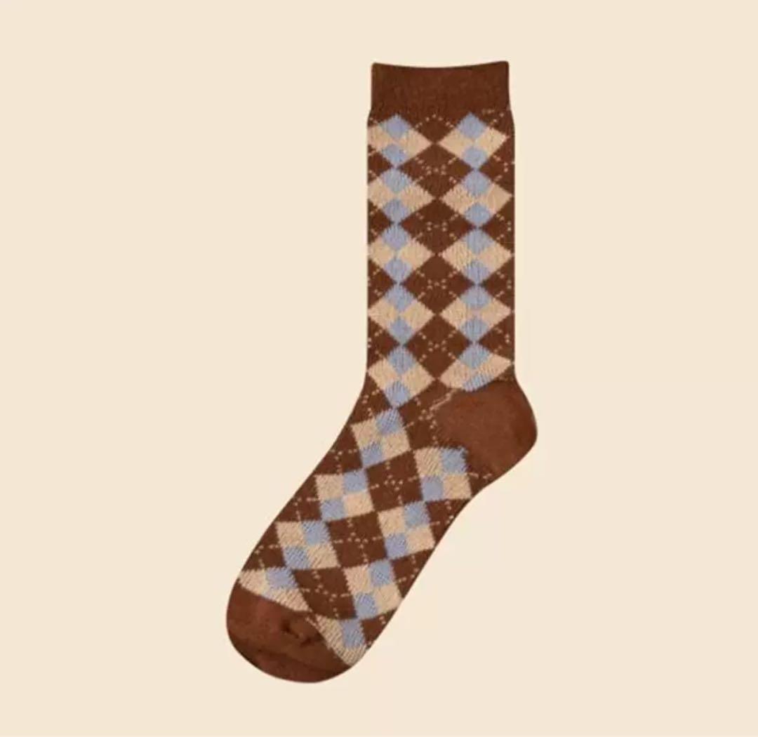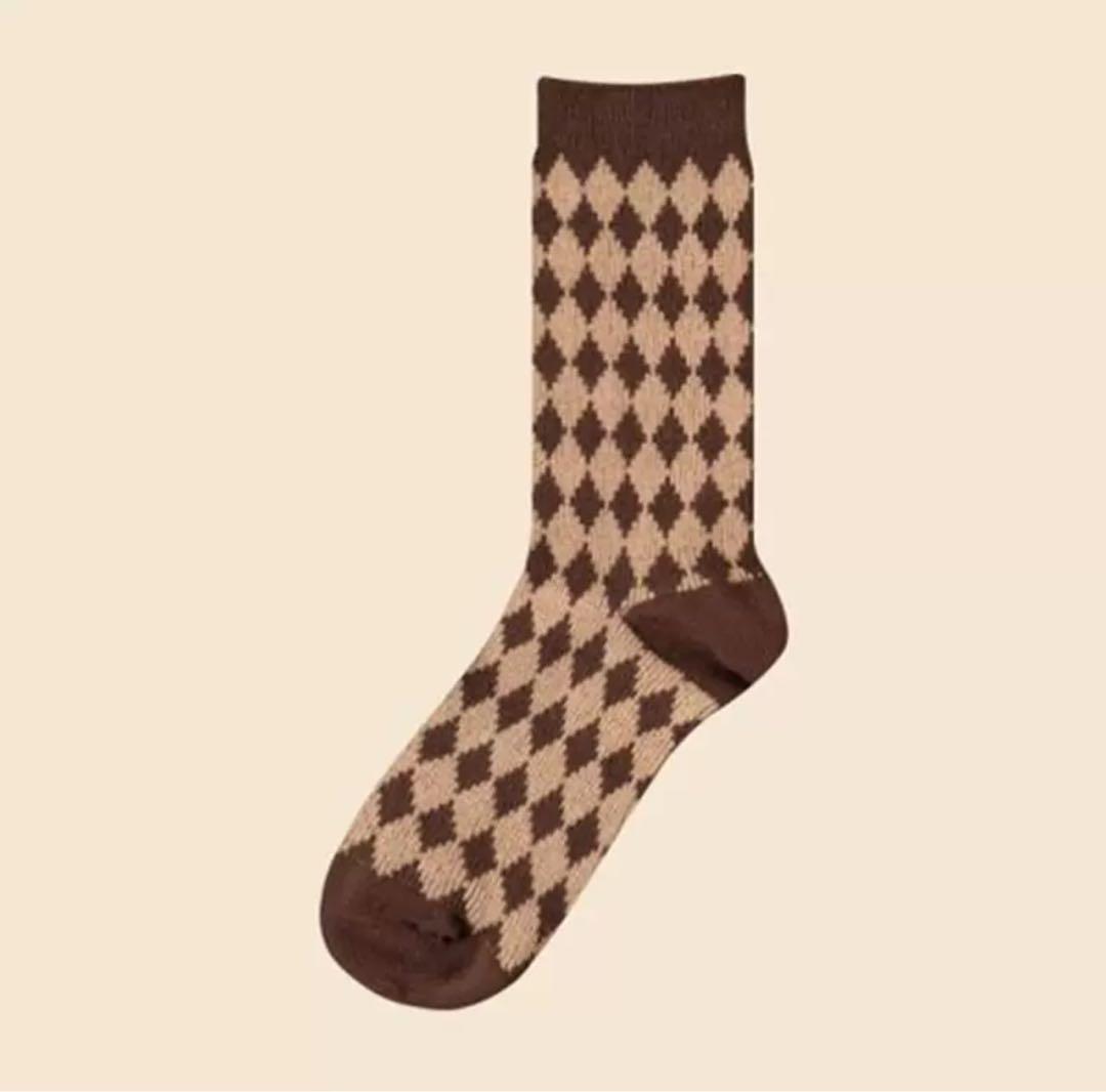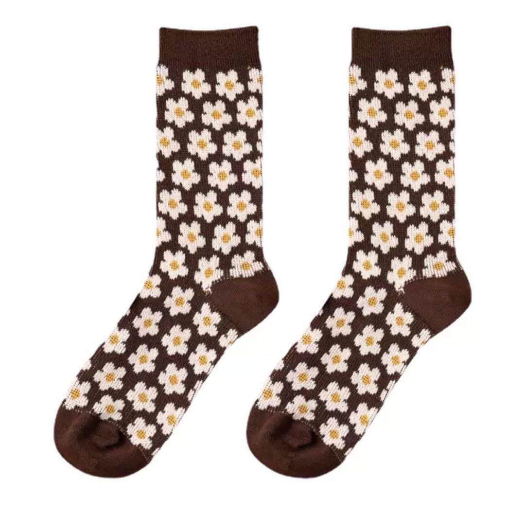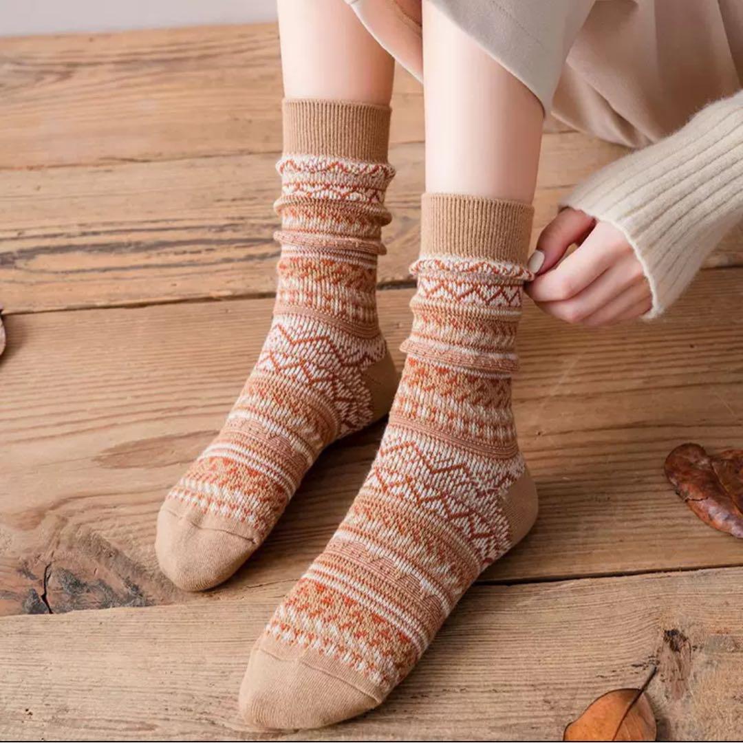 レディース 靴下 6色セットブラウン あったか セット 韓国 保温 吸水 厚め くつ下 ソックス 秋冬 花柄 幾何学模様 茶系 茶色 ベージュ おしゃれ かわいい