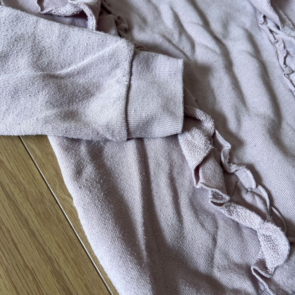 細かい毛玉、薄い色です。シミ?汚れ?あると思います。