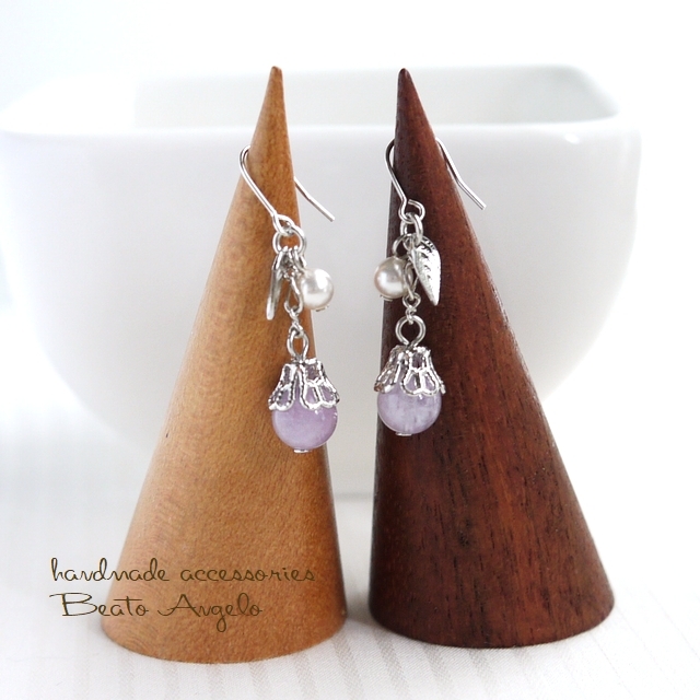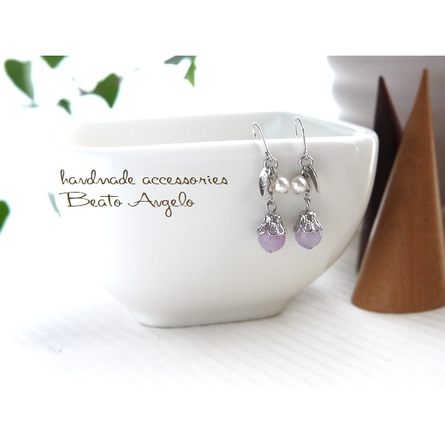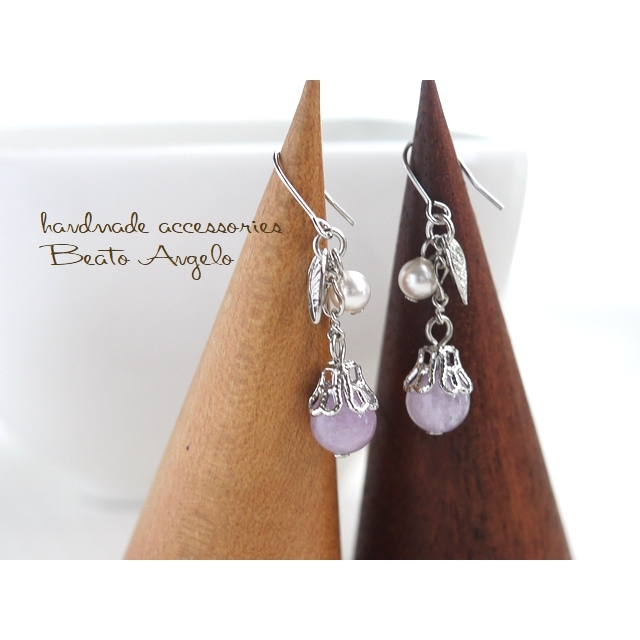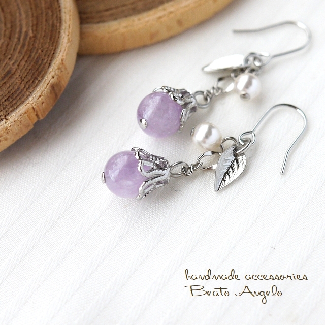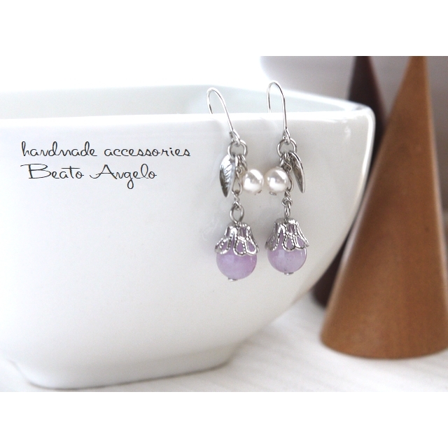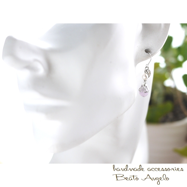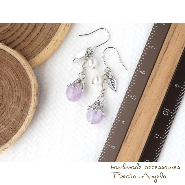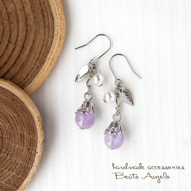 天然石ラベンダーアメジストとパールのプチピアス(p-014)S