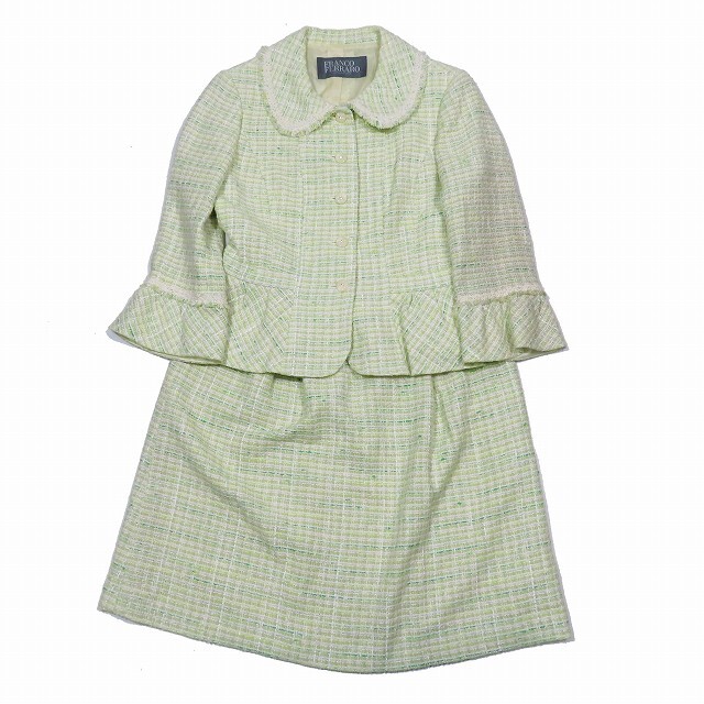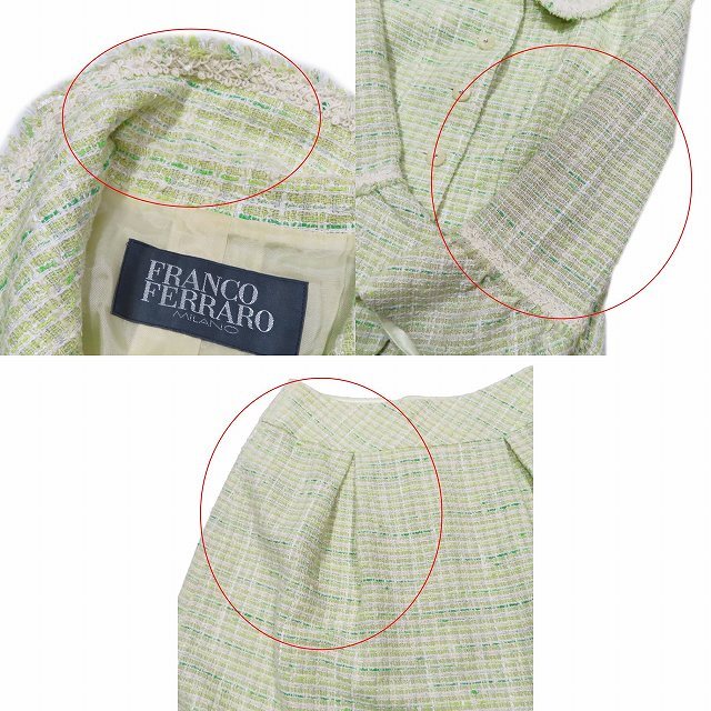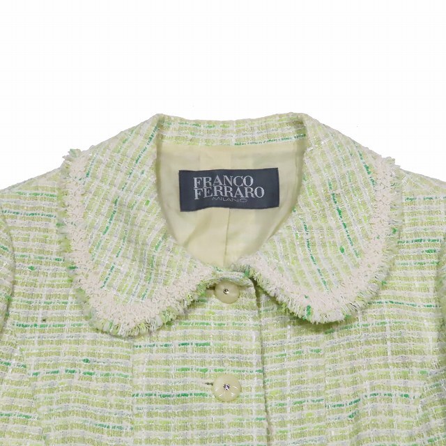 フランコフェラーロ FRANCO FERRARO ツイード セットアップ スーツ ジャケット フレアスカート ライトグリーン/11YBA10 レディース