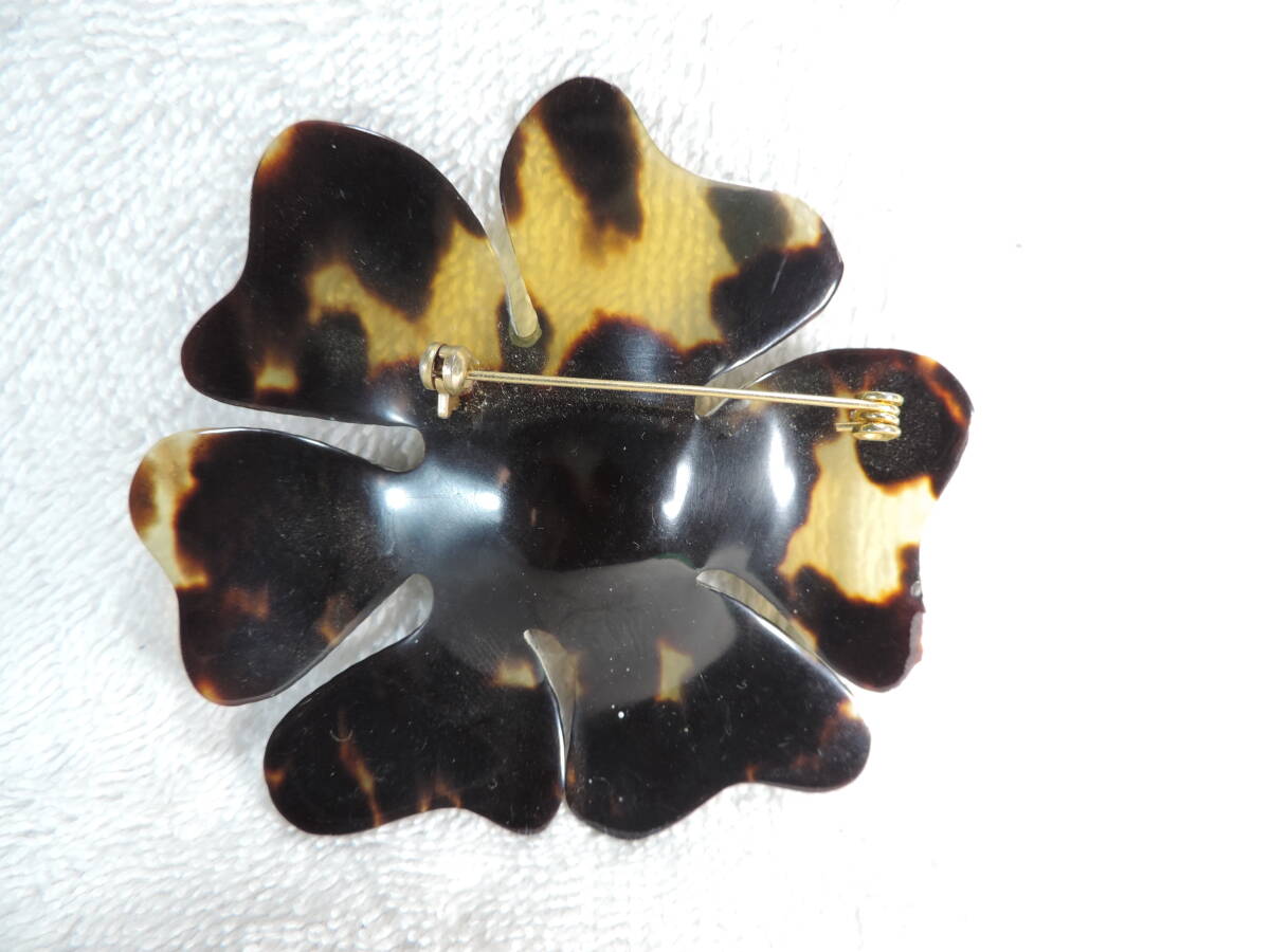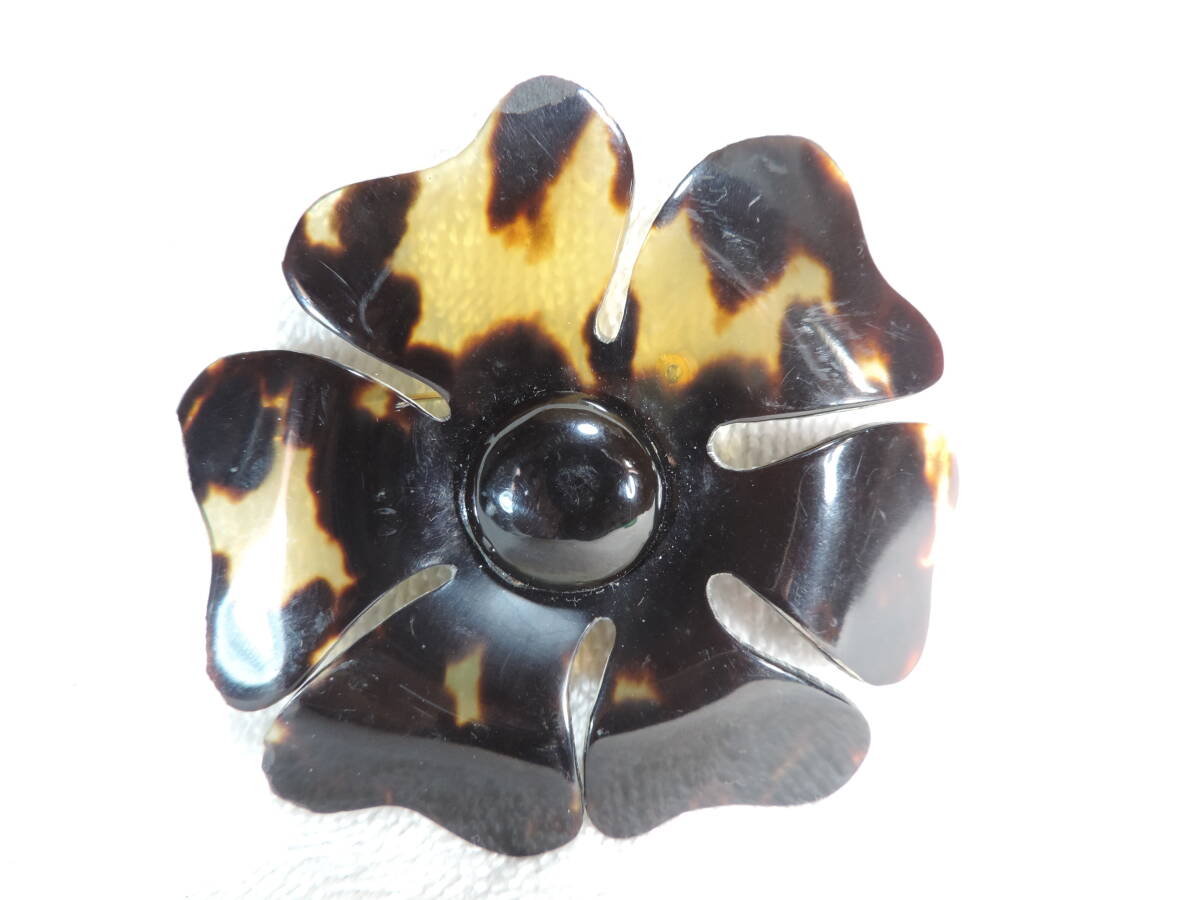 鼈甲(虫食い数点あり)・本鼈甲ブローチ・大振り花デザイン (縦約70ミリx横約70ミリ) 総重量約:10.90g