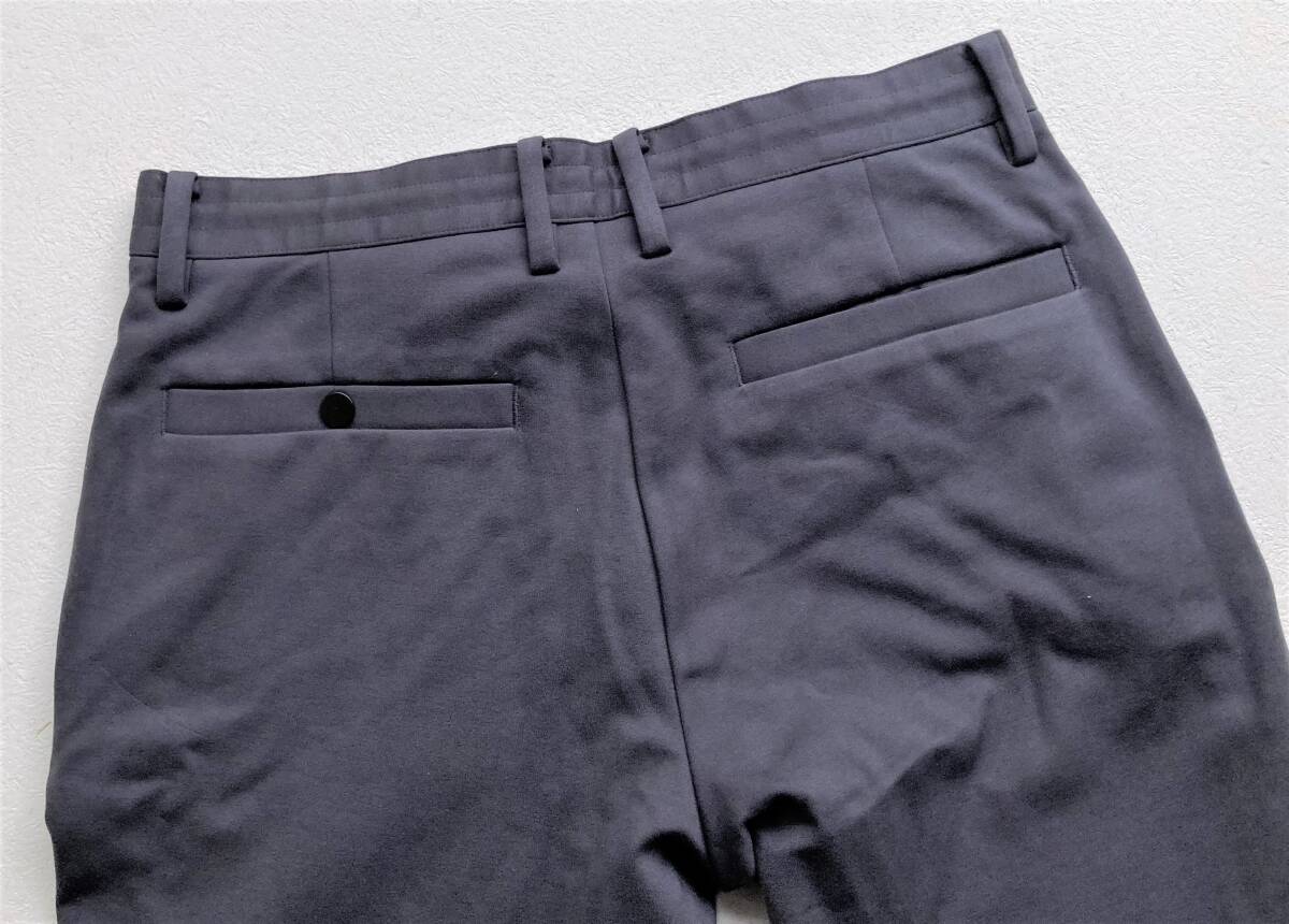 ストレッチ素材で細身、裾にかけてテーパードですっきりしたシルエット。