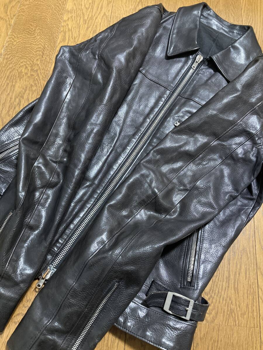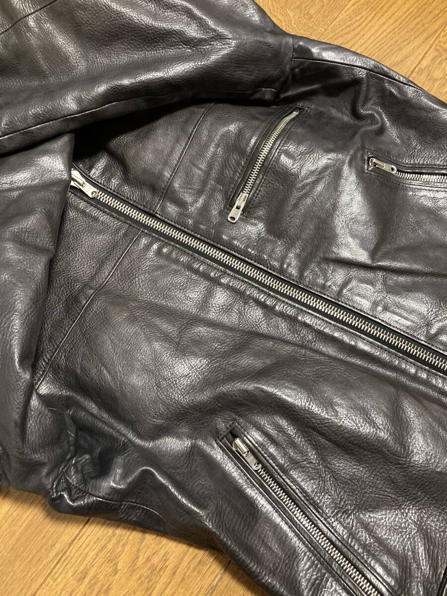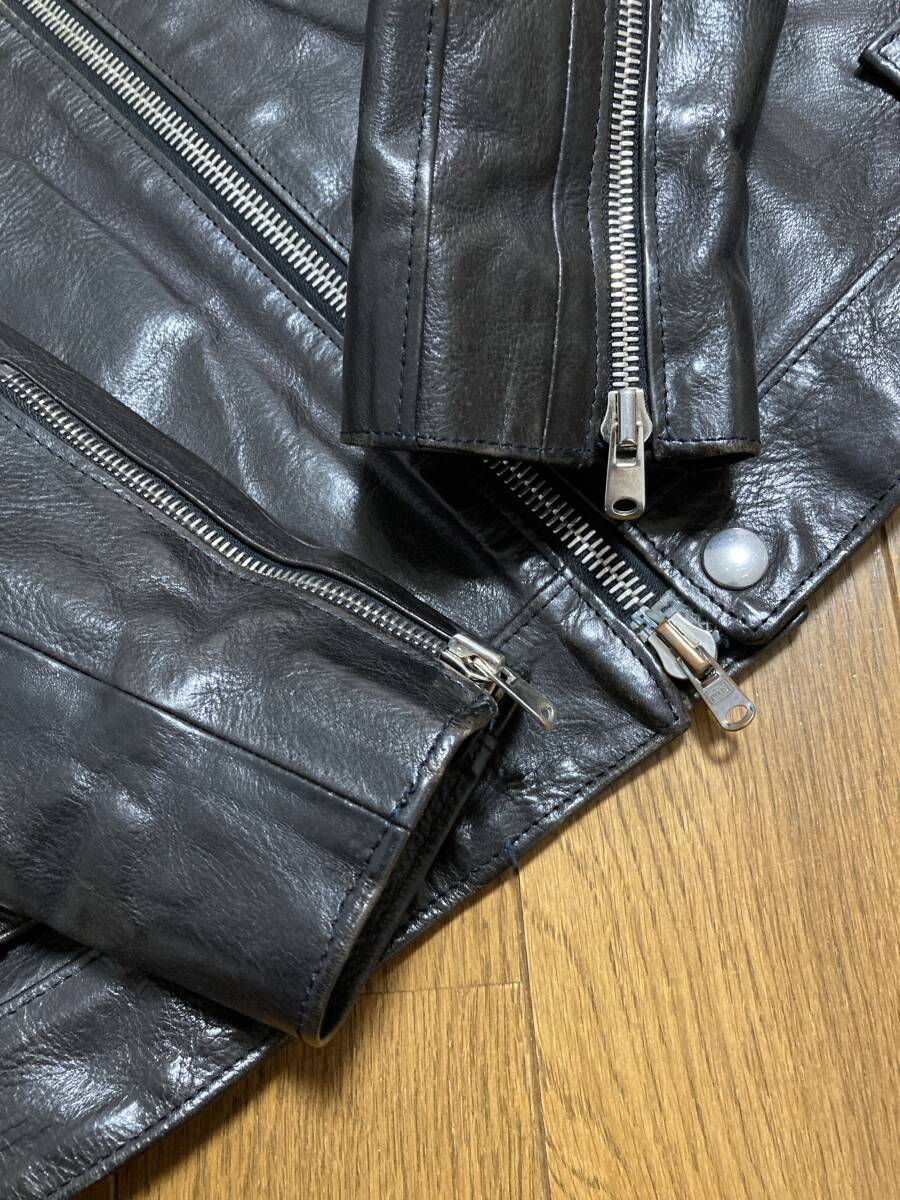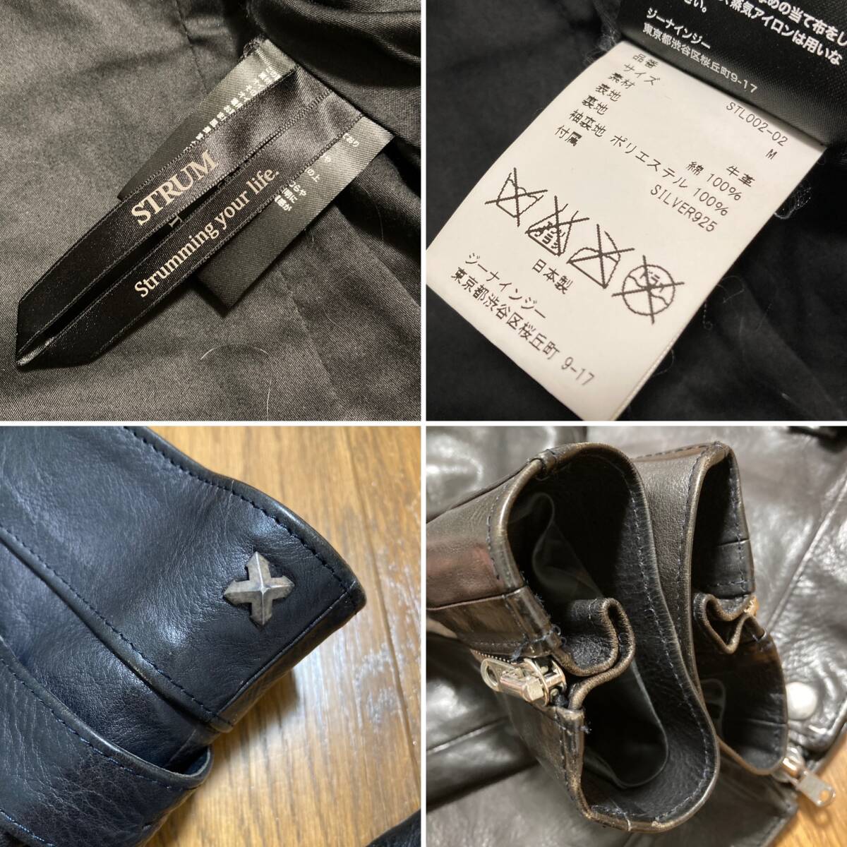 [STRUM] 定価181,500 茶芯 フランスダブルショルダー タンニン シングルライダース レザージャケット M 牛革 ブラック STL002-02 ストラム