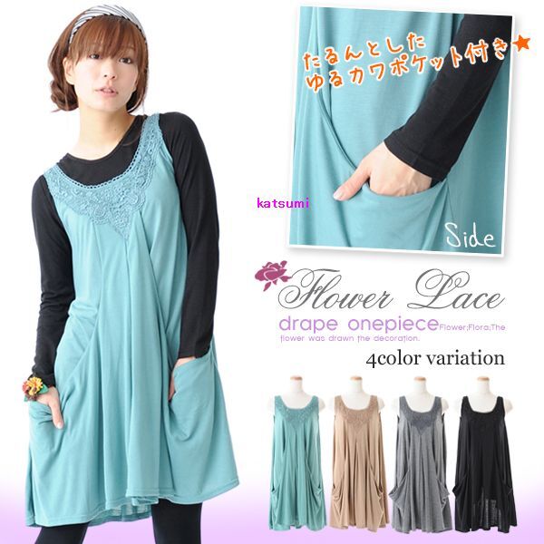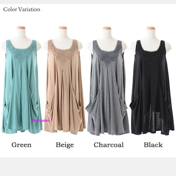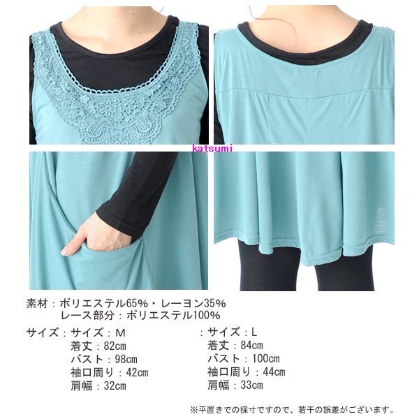 【素材】ポリエステル65%、レーヨン35%、レース部分:ポリエステル100%