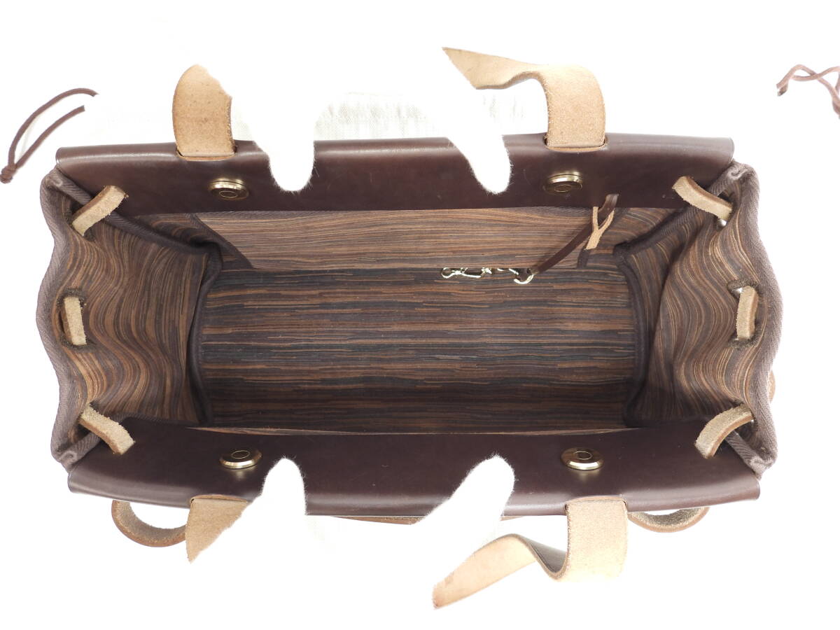 ・バッグ開口部淵にあるベルトを絞るとまちの幅を調節できます。