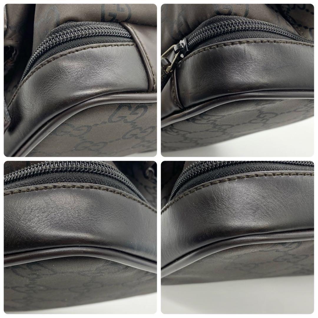 GG柄 ナイロン × レザー の ダークブラウン カラーが 上品 かわいい デザインです。