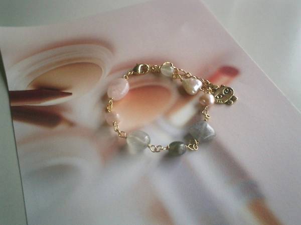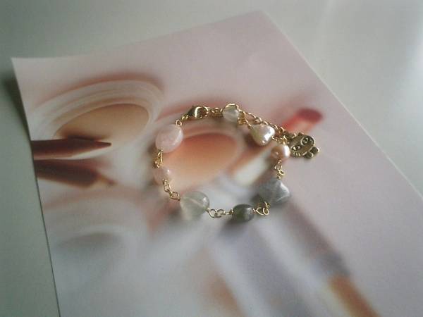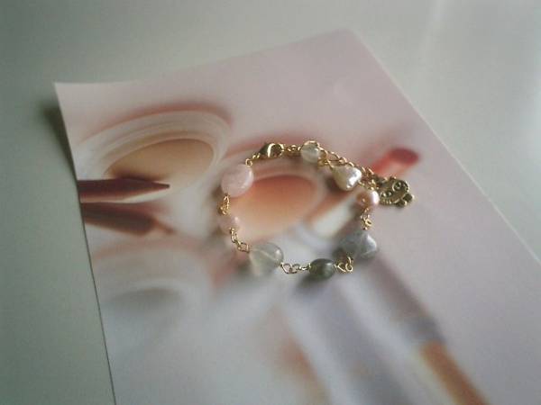 ナイーブ少女・・シリーズです♪ノスタルジック・ピンク・・繊細なローズクォーツやラブラドライト、ピンクカルセドニーやグレーカルセドニー、淡水パールなど淡いピンクやグレーの石を集めたブレスレットです♪♪8ミリから15ミリ位までの丸玉やオーバル、スクエア、ラフタンブルなど大きさ違い、デザイン違いの石を集めてノスタルジックな表情です♪長さは全長23センチ位で調節自由です♪♪お揃いのネックレスも出品しています♪ハンドメイドをご理解いただいたノークレーム・ノーリターンでお願いします♪