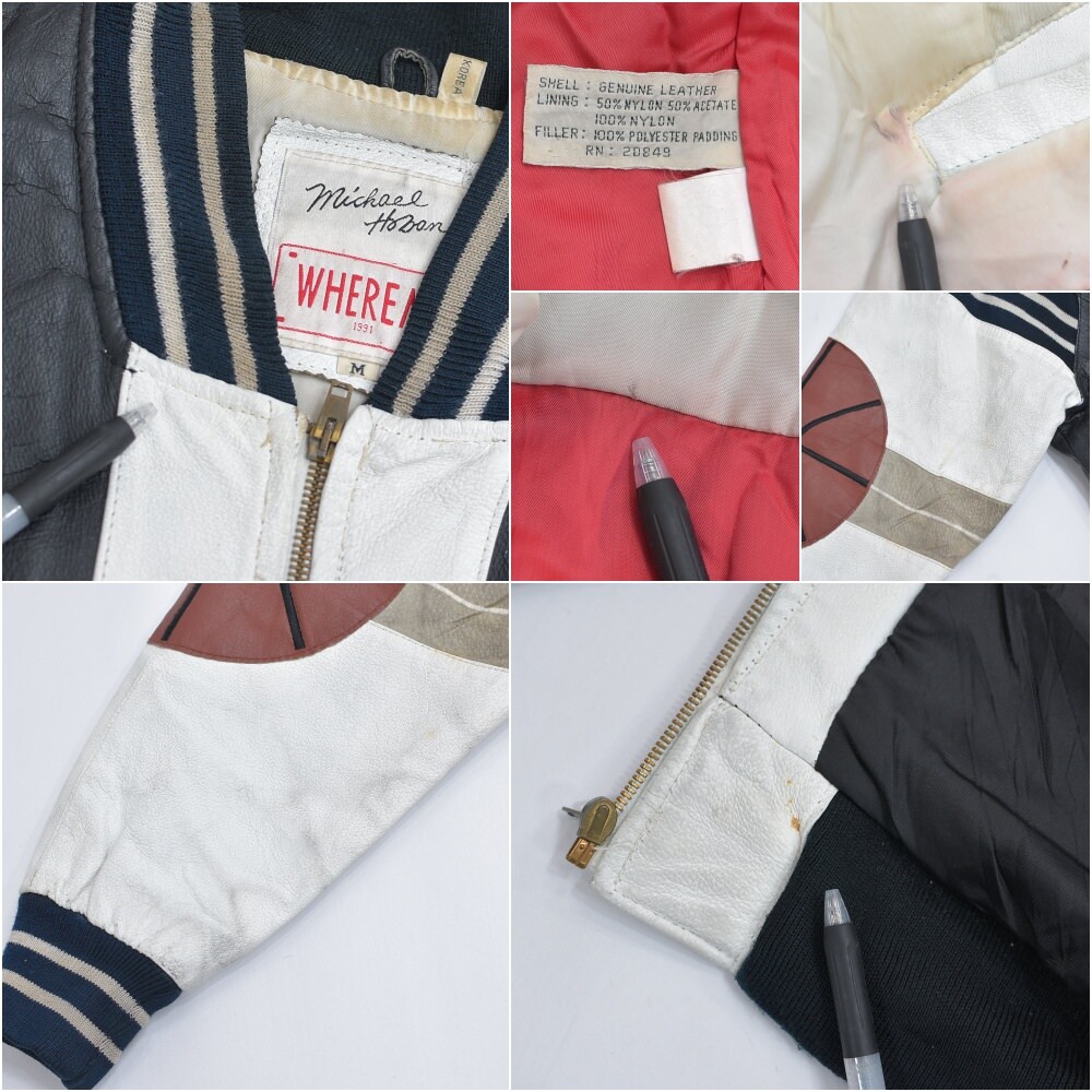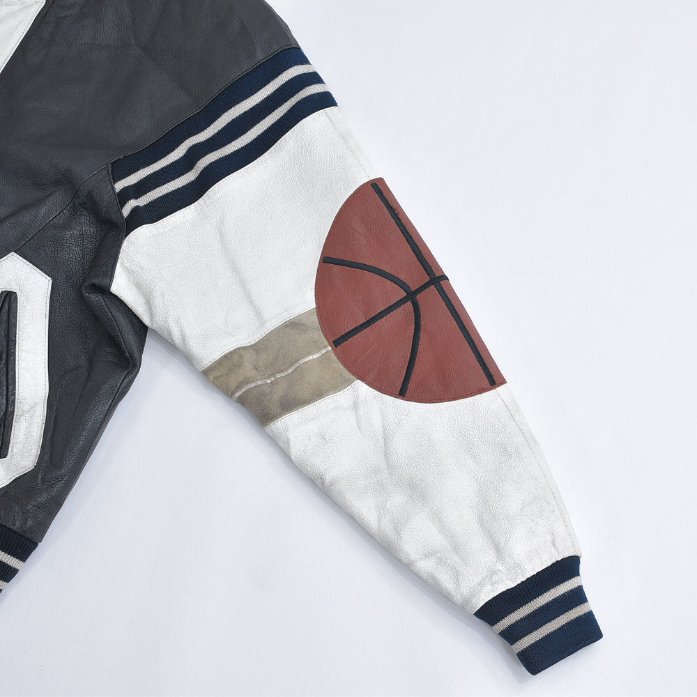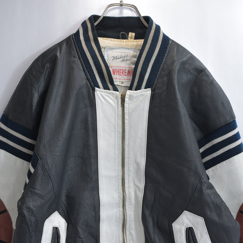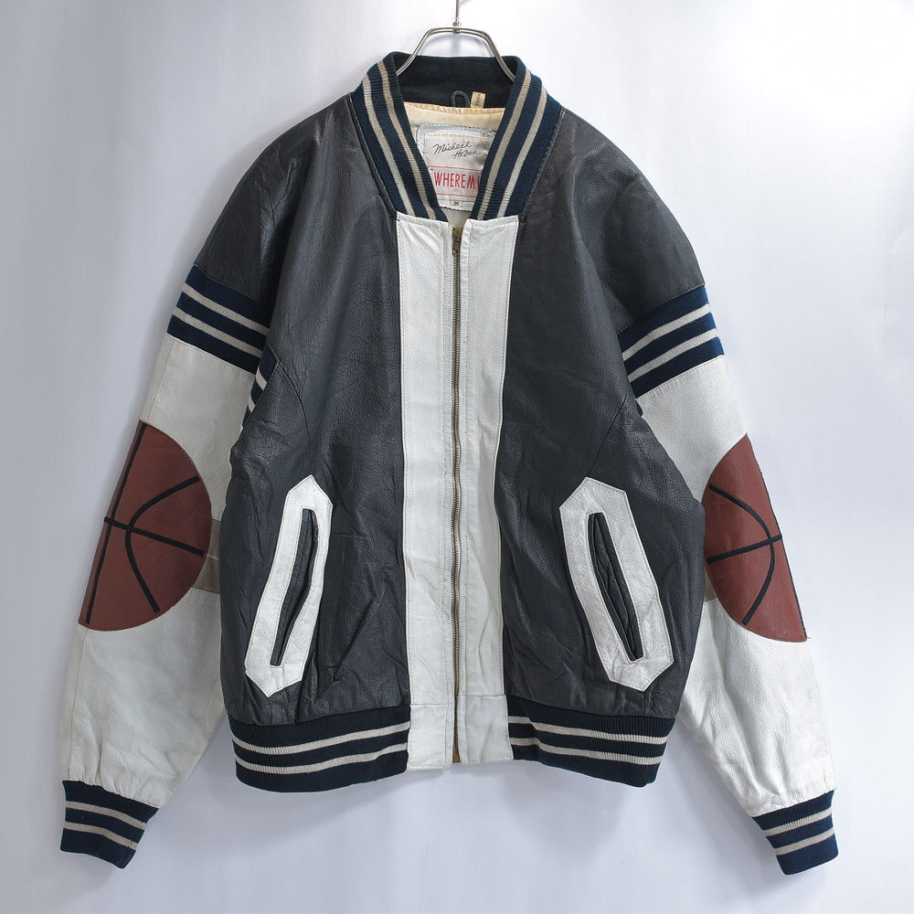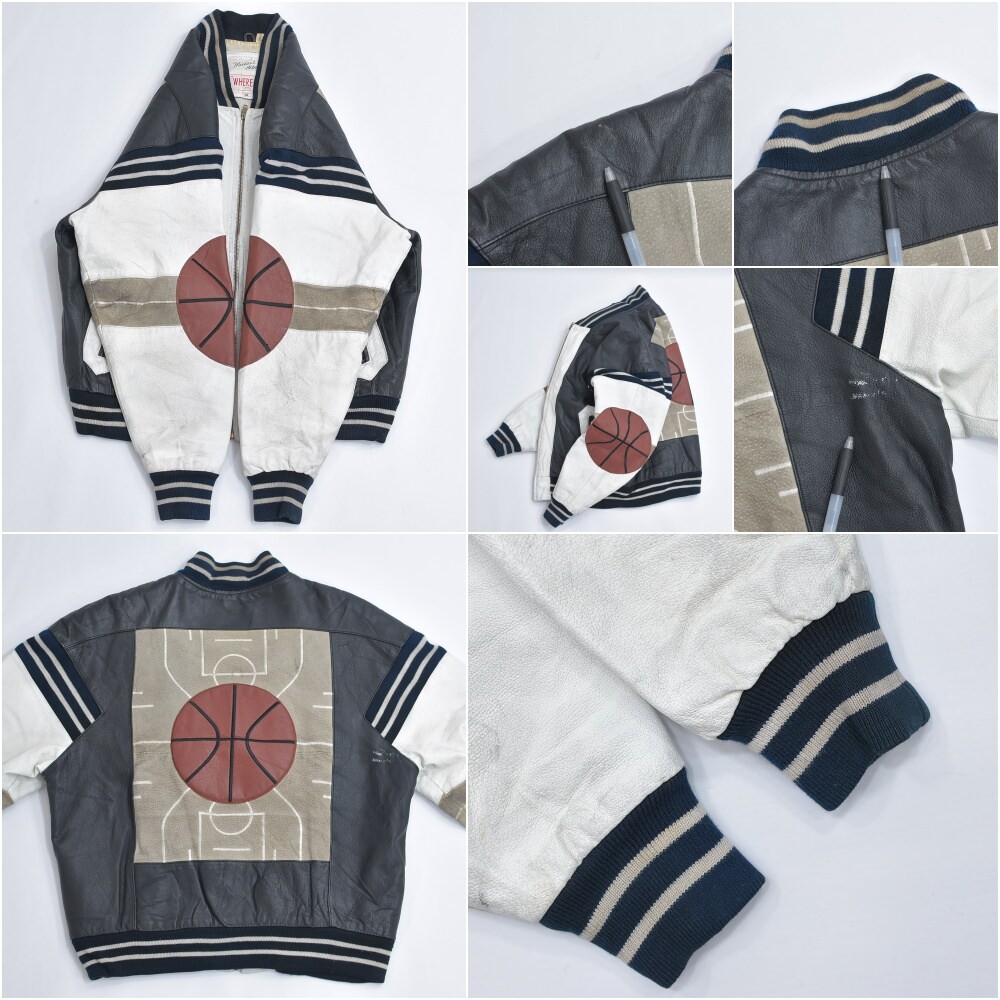80~90s WHERE MI 切替デザイン レザー ジャケット ブルゾン ヴィンテージ 本革 バスケットボール スエード ビンテージ アウター アメリカ古着メンズ M サイズ