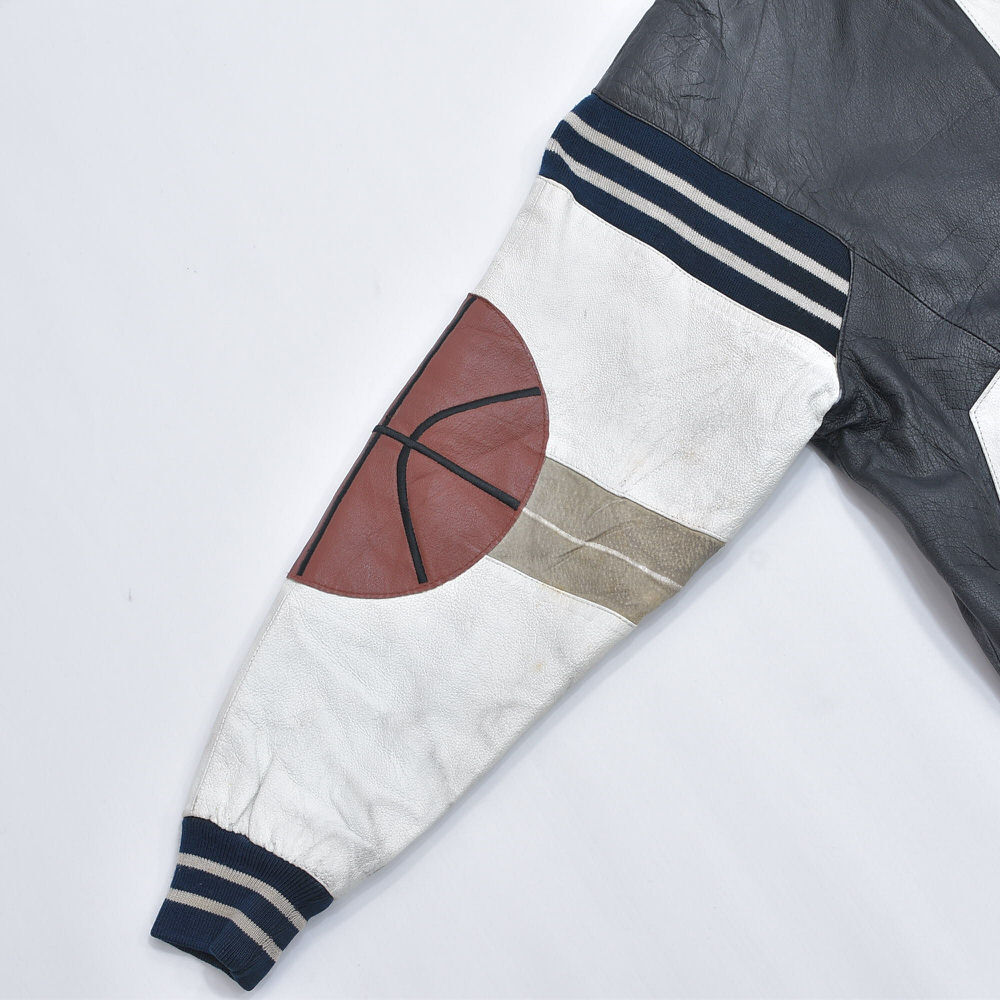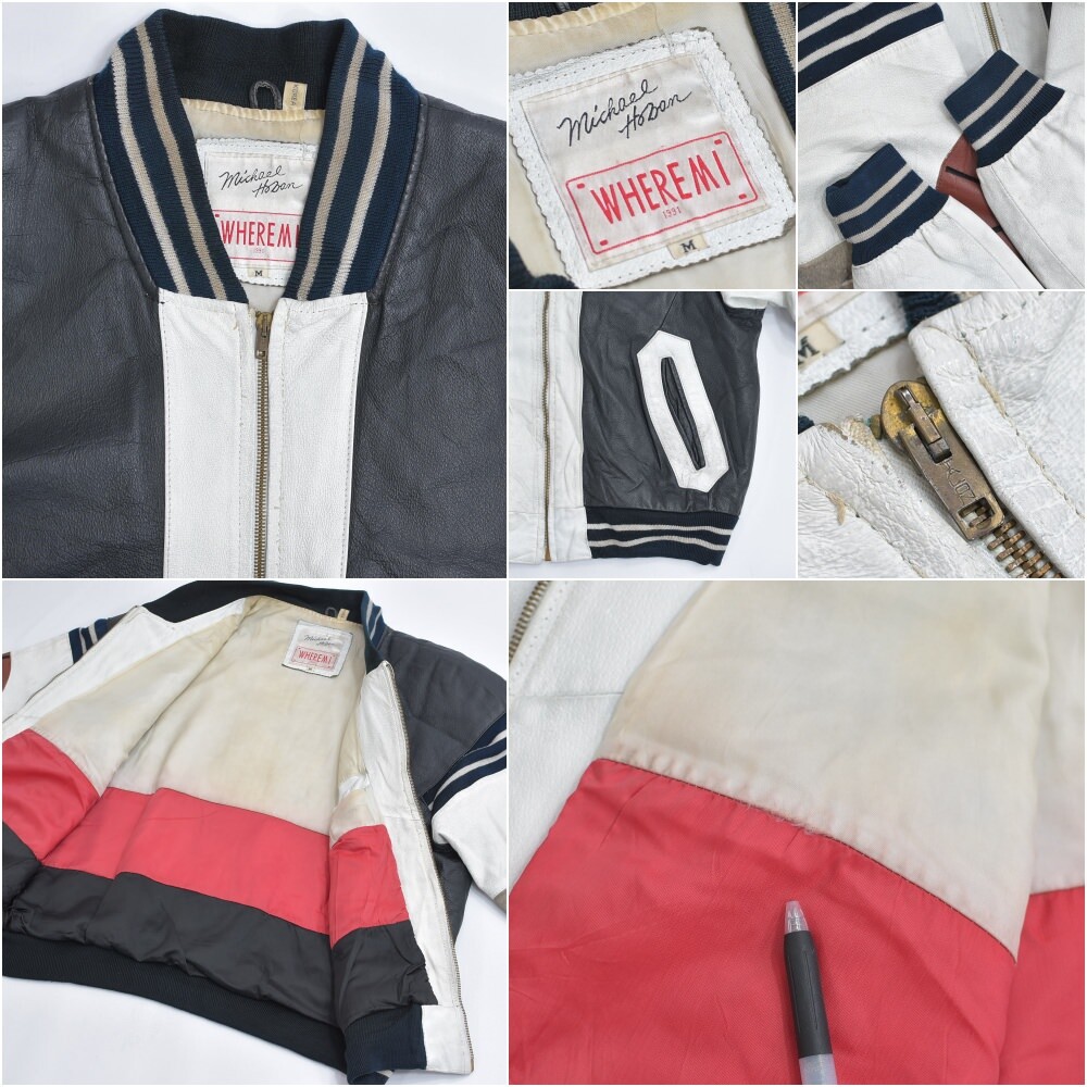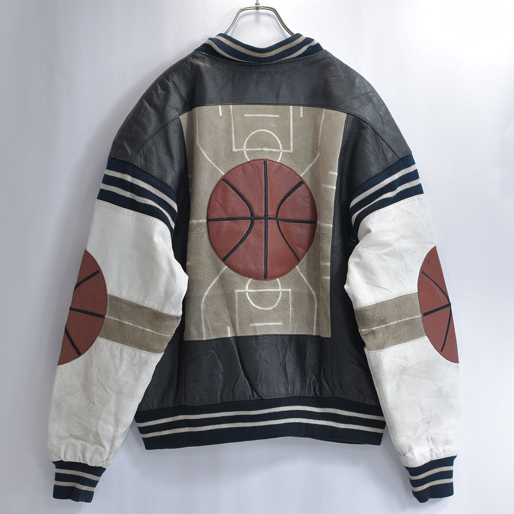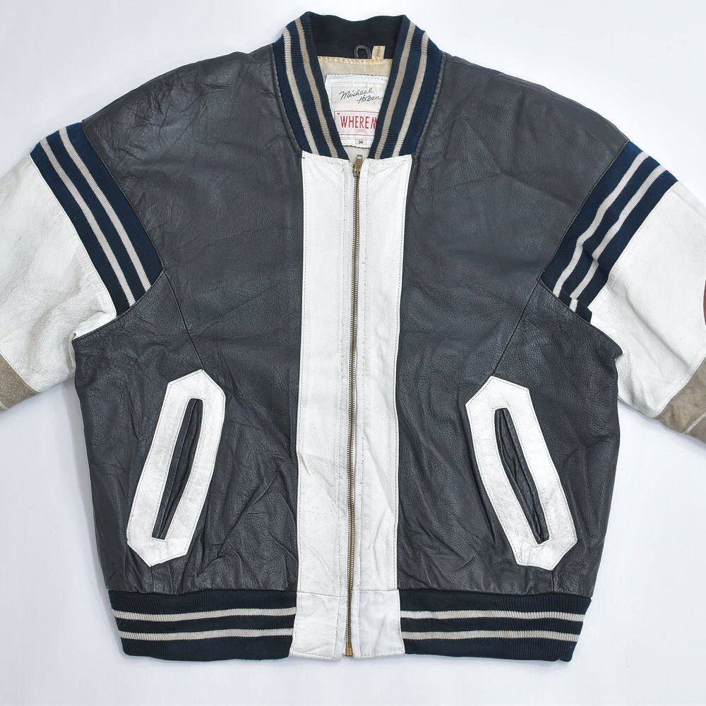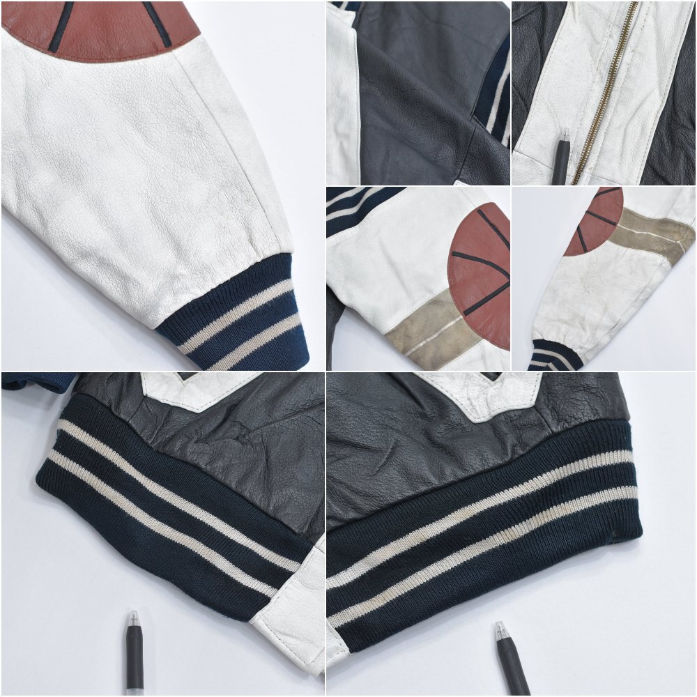 80~90s WHERE MI 切替デザイン レザー ジャケット ブルゾン ヴィンテージ 本革 バスケットボール スエード ビンテージ アウター アメリカ古着メンズ M サイズ