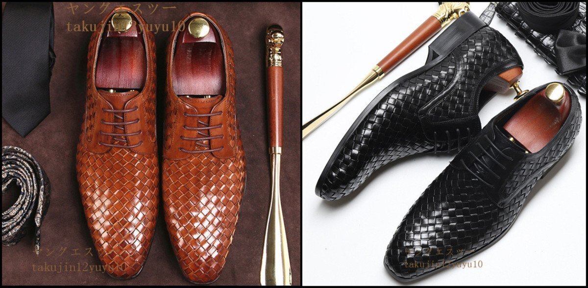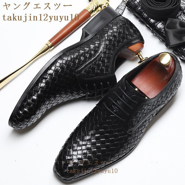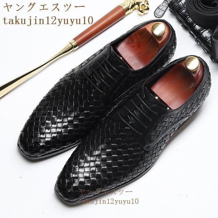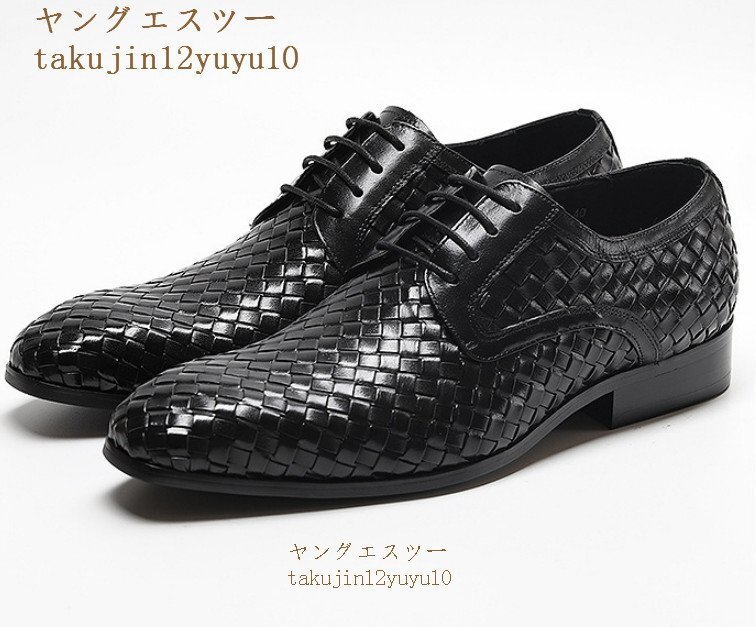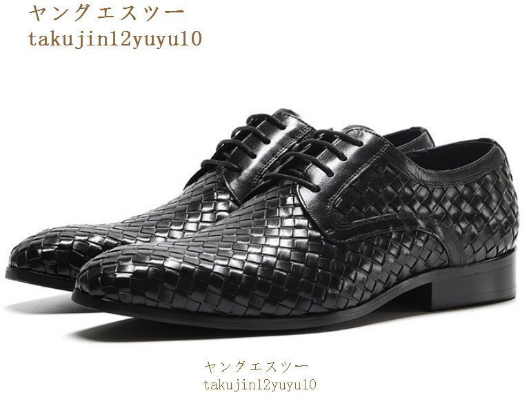 定価9万 メンズ 新品 ビジネスシューズ 本革 レザーシューズ 職人手作り 牛革 編み込み 高級トップレイヤー 紳士靴 レースアップ 黒 24.5cm