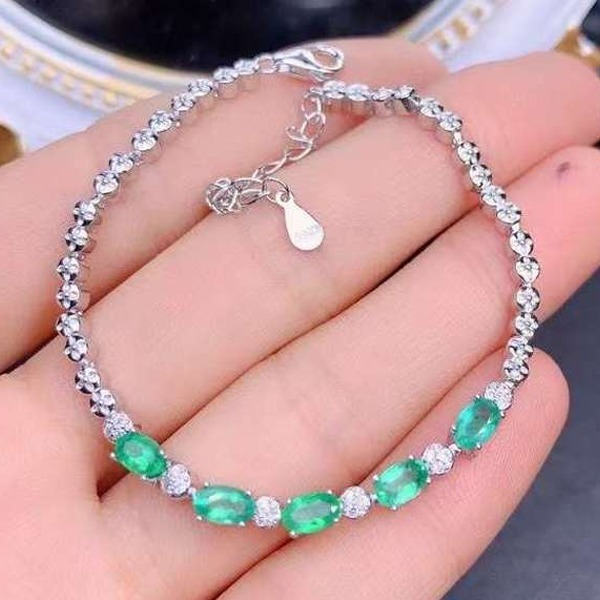 女性のための天然エメラルドブレスレット、925シルバー、金メッキ、天然宝石、パーティーギフト