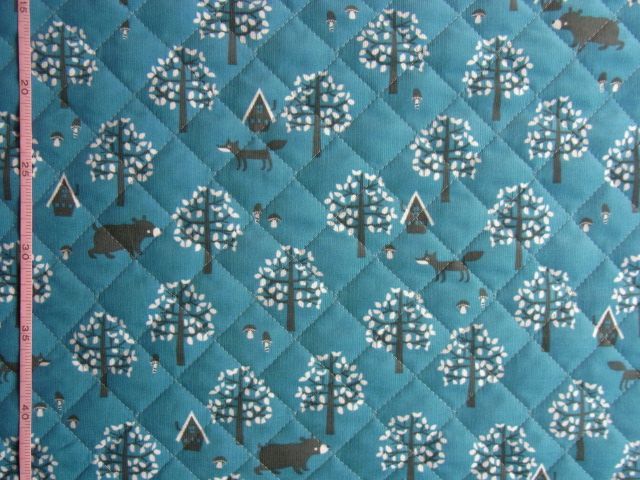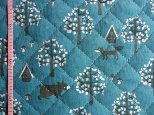 KIYOHARA極細コーデュロイ半針キルト【しずかな森(ナイルブルー)】[NE1909-B]