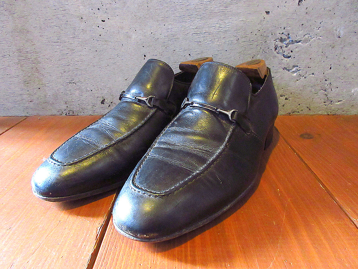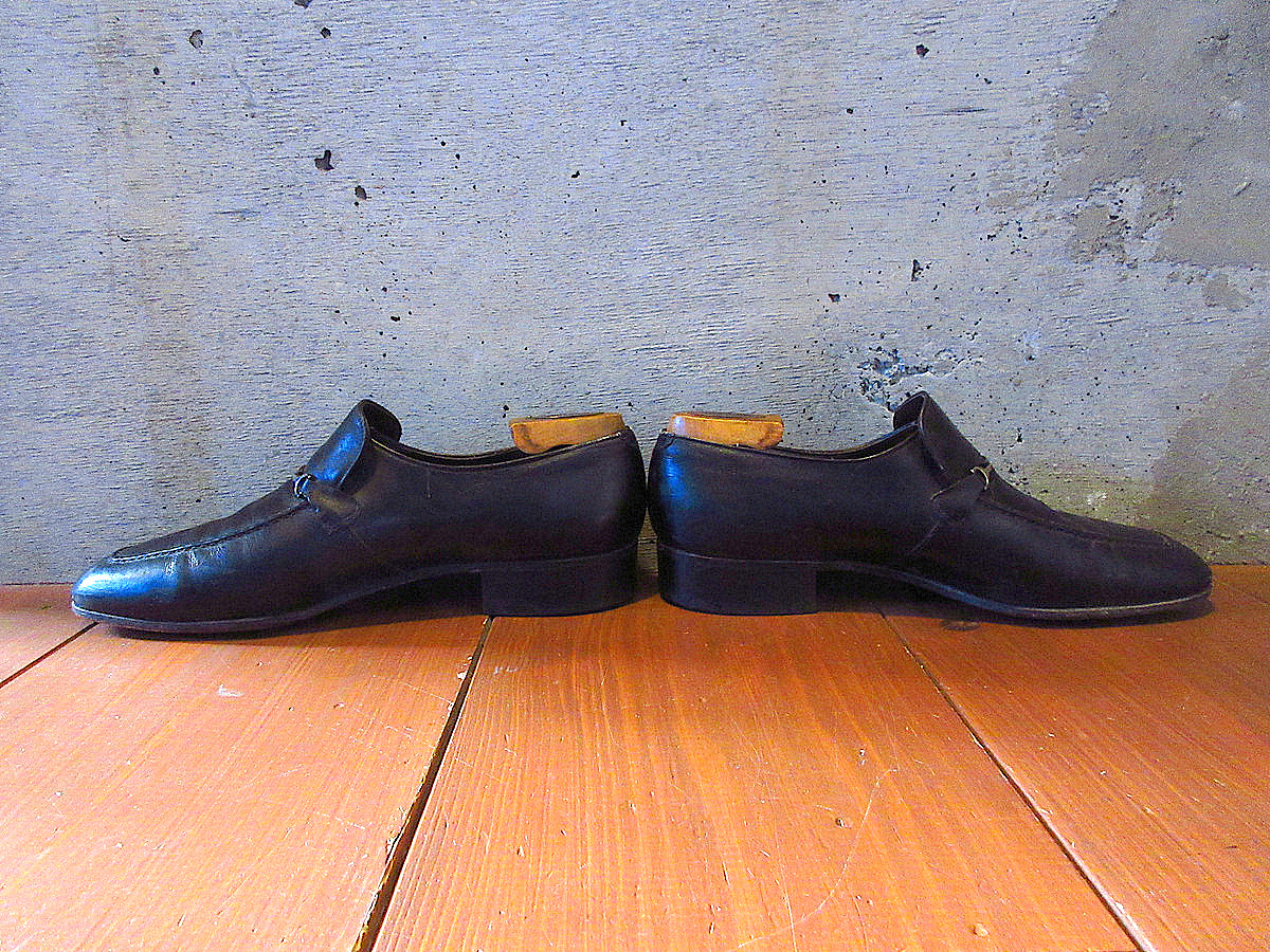 ビンテージ70’s●レザーローファーsize 9D●241210k5-m-lf-27cm 1970sメンズ古靴革靴ブラック