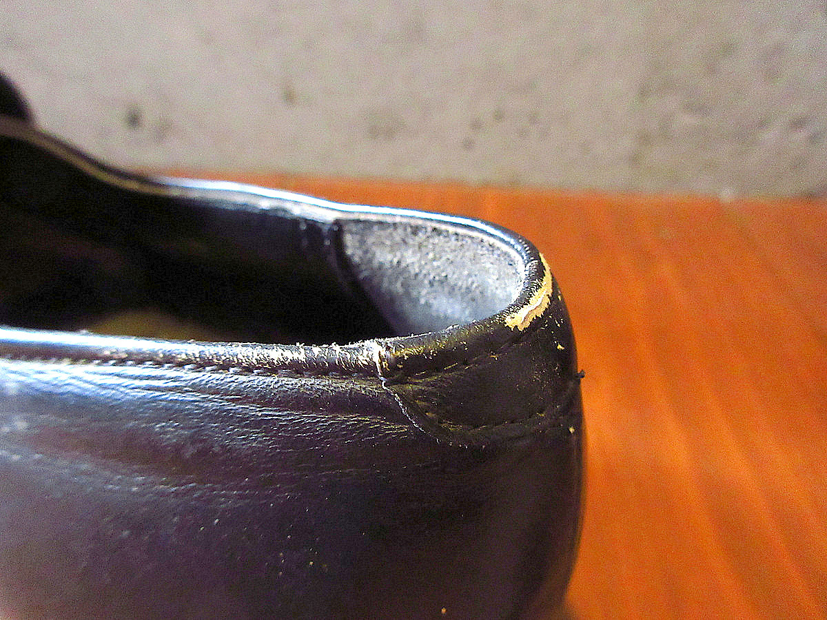 履き皺あり、インソールに剥がれやダメージあり、履き口周りに擦れ、その他にも傷や汚れあり、ブランド名読み取り不可