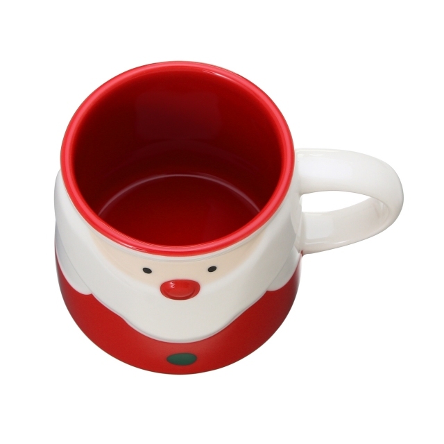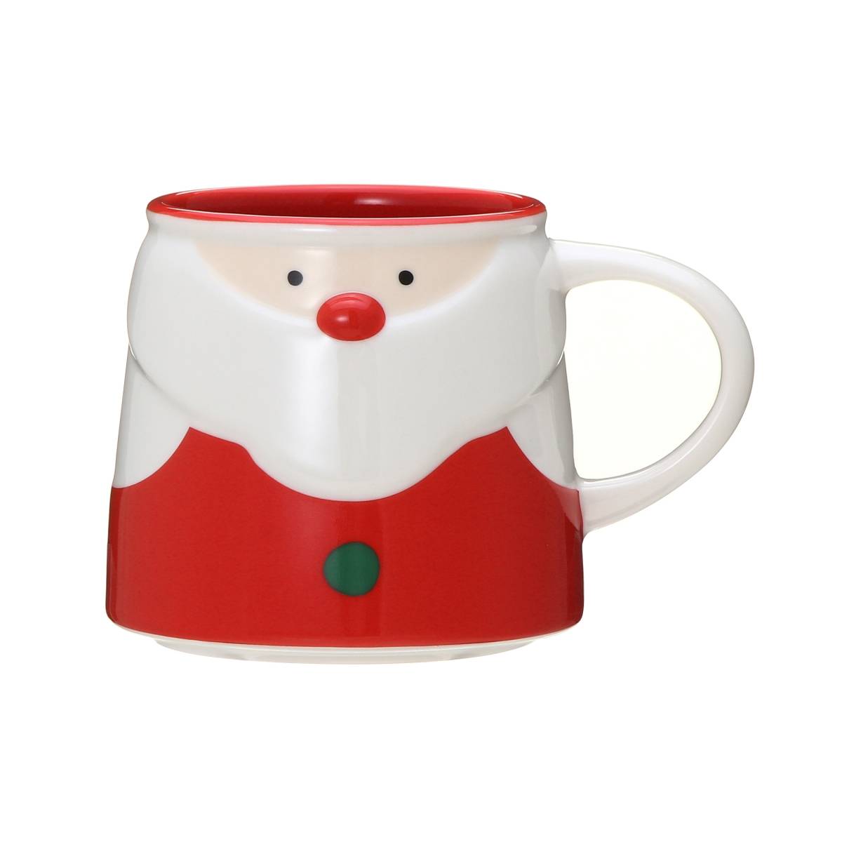 レッドエプロンを身に着けたサンタクロースをカップ全体で表現した、可愛らしい雰囲気のマグカップです。