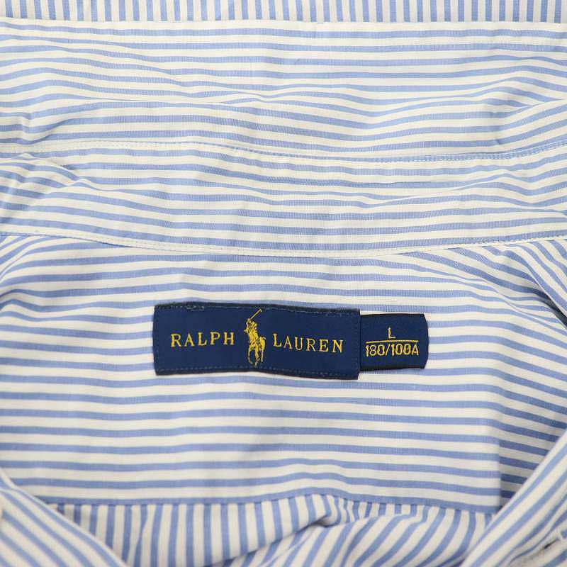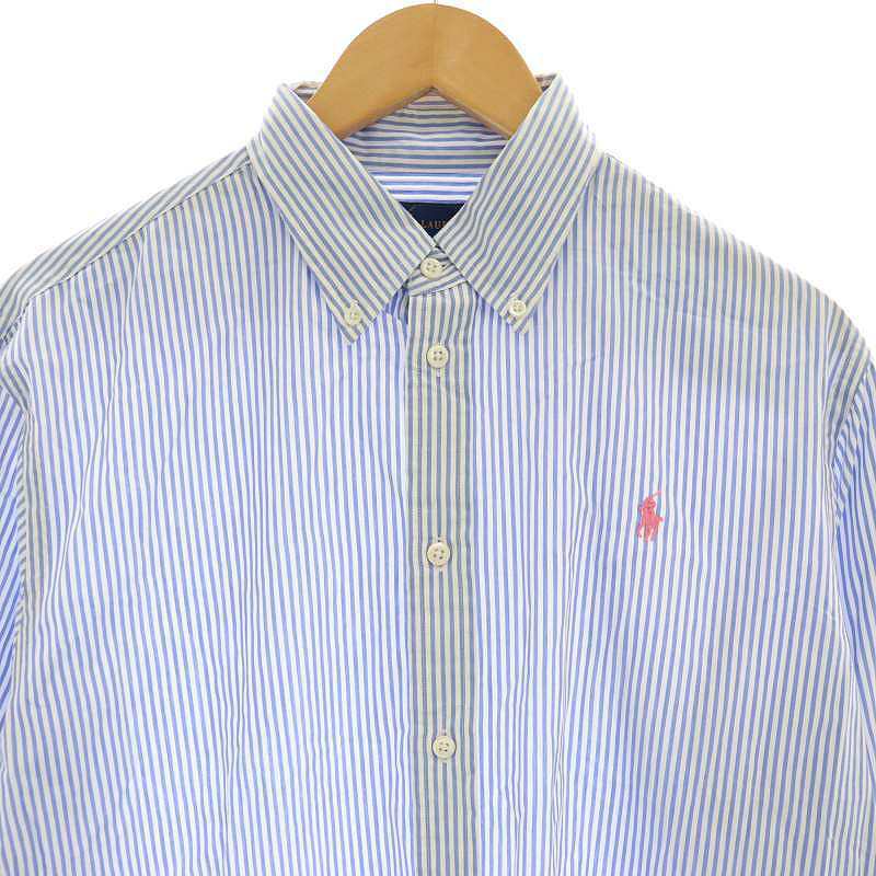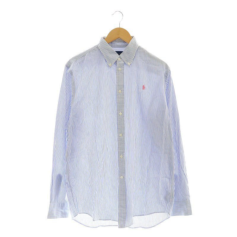 ラルフローレン RALPH LAUREN 刺繍 ストライプ BD シャツ 長袖 ボタンダウン ロゴ刺繍 L 青 白 ブルー ホワイト /MI ■OS メンズ