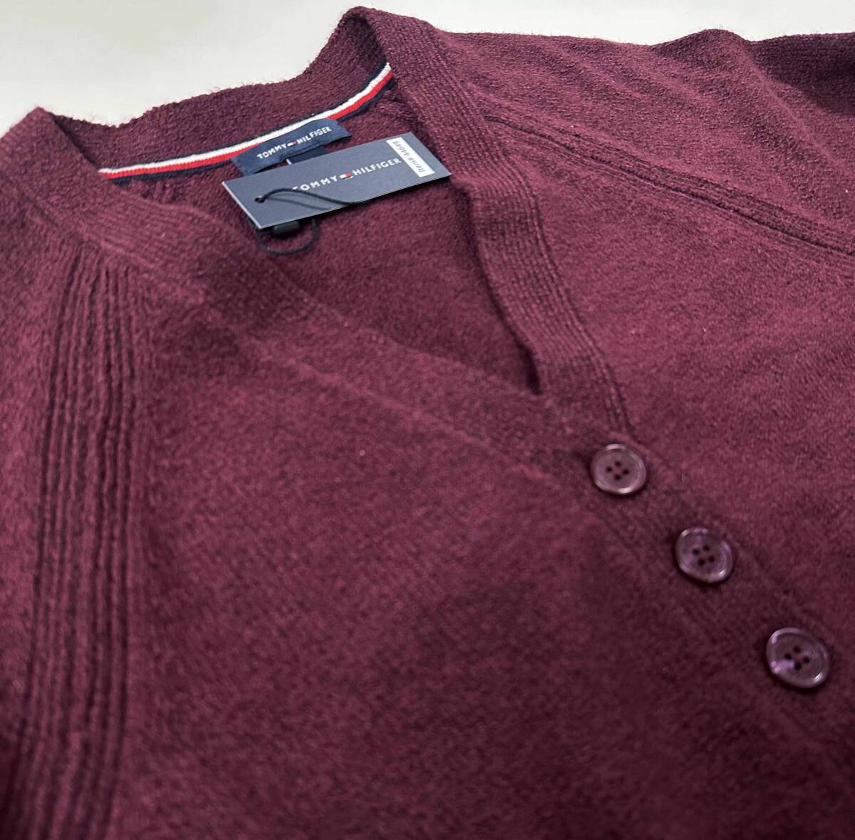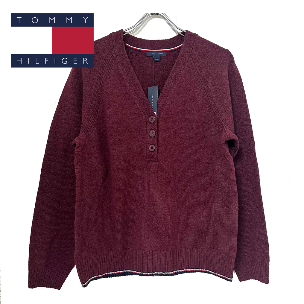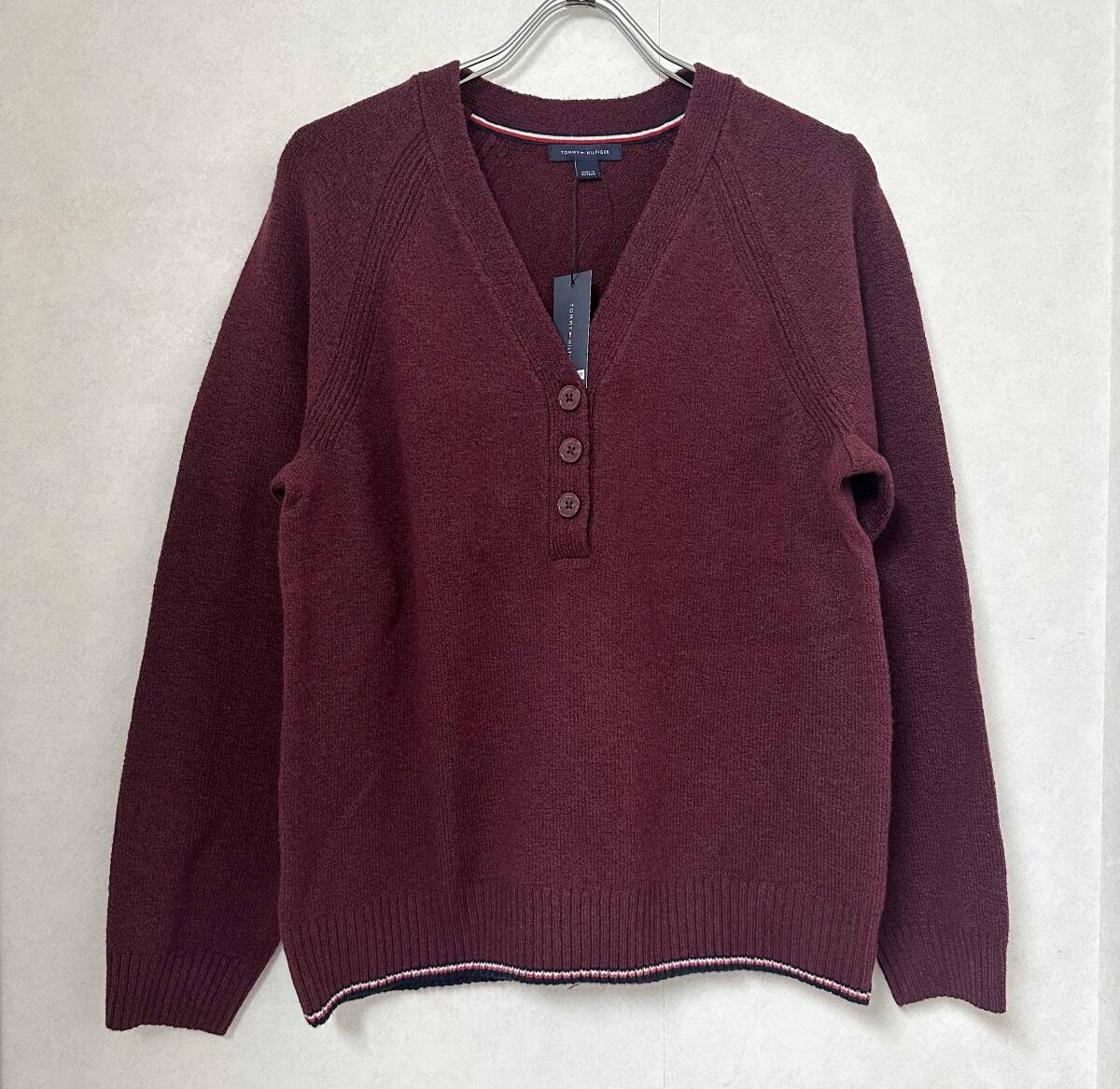 新品 L ★ TOMMY HILFIGER トミーヒルフィガー ヘンリーネック コットン セーター US-M ボルドー