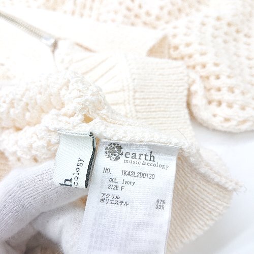 ◇ ⊂ earth music&ecology シアー メッシュ 長袖 カーディガン サイズF アイボリー系 レディース E