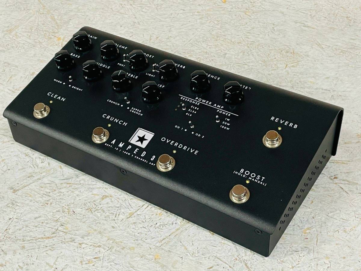 Blackstar、100Wマルチチャンネル、ペダル型ハイゲイン・アンプ、DEPT.10 AMPED 3です。3種類のパワー管レスポンスを搭載。出力を1Wまで下げることができスタジオなどでも使用が可能。またUSB接続が可能でPCとの接続も容易です。設定はプログラム可能です。