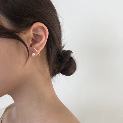 ピアス ゴールド パール 韓国 シンプル デザイン S925 ツイスト 真珠 金 イヤーフック 幾何 ダブルサイド 女性 #C581-2