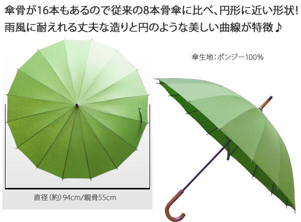 そんなお声に対して考えられたのが、こちらの16本の骨組みで作られた傘♪