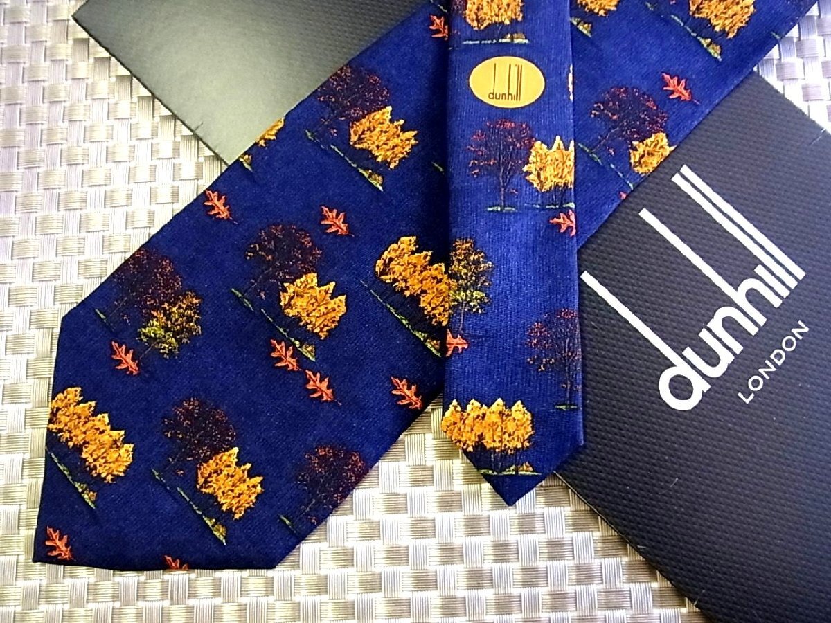 ★RB3251★【樹木 紅葉 葉っぱ 植物 柄】ダンヒル【美品】ネクタイ