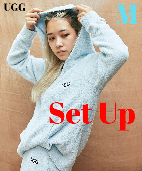 M 新品 ¥19,800【UGG ROOM WEAR fluffy ジップアップ フーディー パンツ セットアップ UGG パーカー ルームウェア ふわふわ モコモコ】