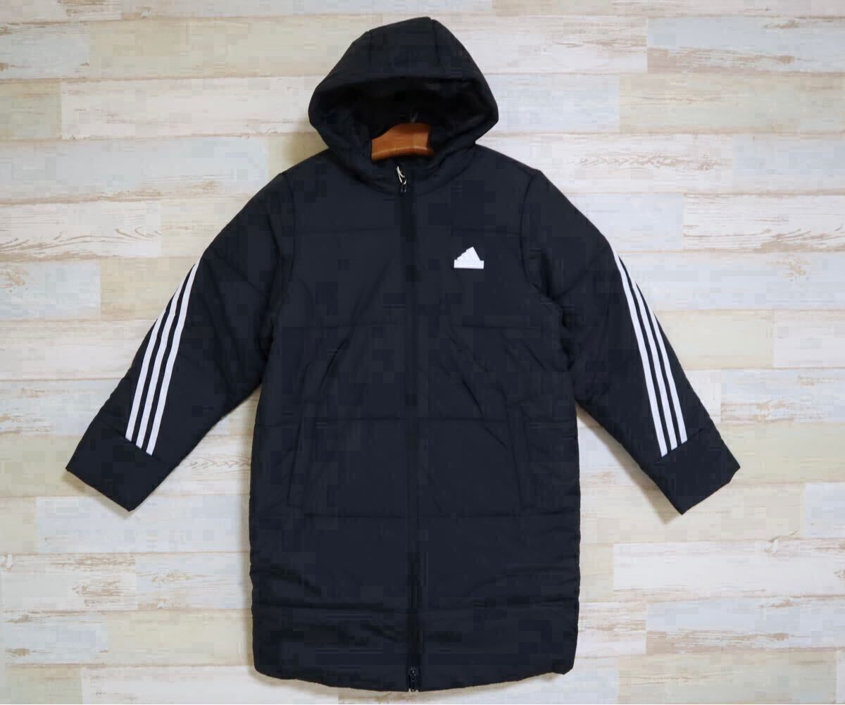 商品: キッズ 中綿 ベンチコート ロングジャケット スリーストライプス パデッドジャケット