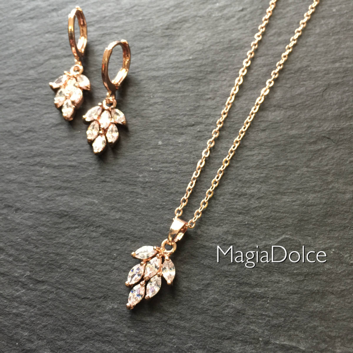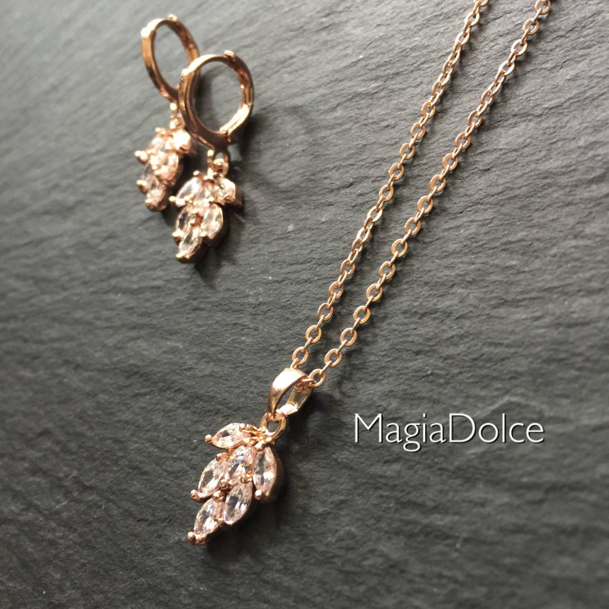 送料無料*MagiaDolce 30034●2点セット czダイヤモンドネックレス czダイヤピアス ゴールドピアス ゴールドネックレス イヤリング変更可能