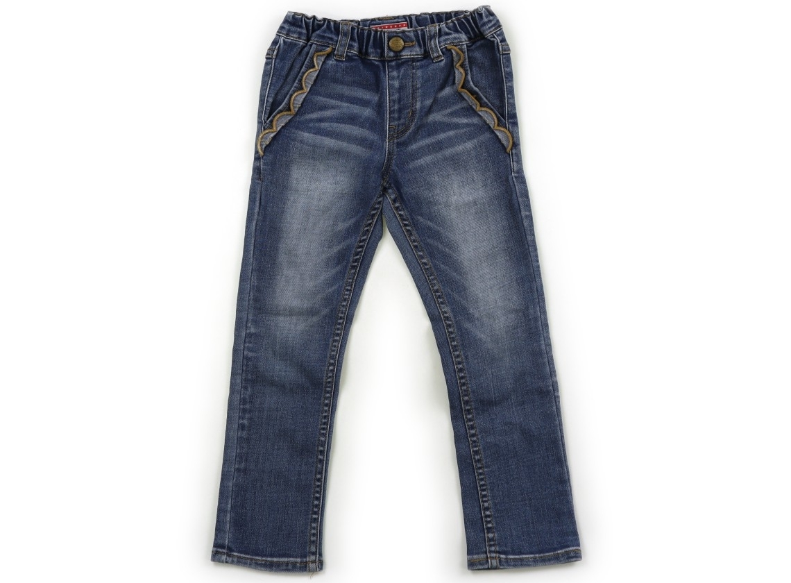 ウエスト総ゴムで交換穴があります。全体に色あせ・毛羽立ちがあります。ポケット周りに型崩れがあります。使用感はありますが、まだまだお使いいただけます。