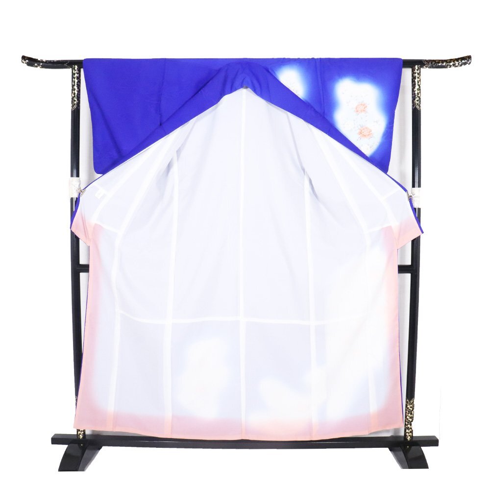 | 訪問着 袷 紺暈し地 葡萄・牡丹・巻物 161 広襟 | |