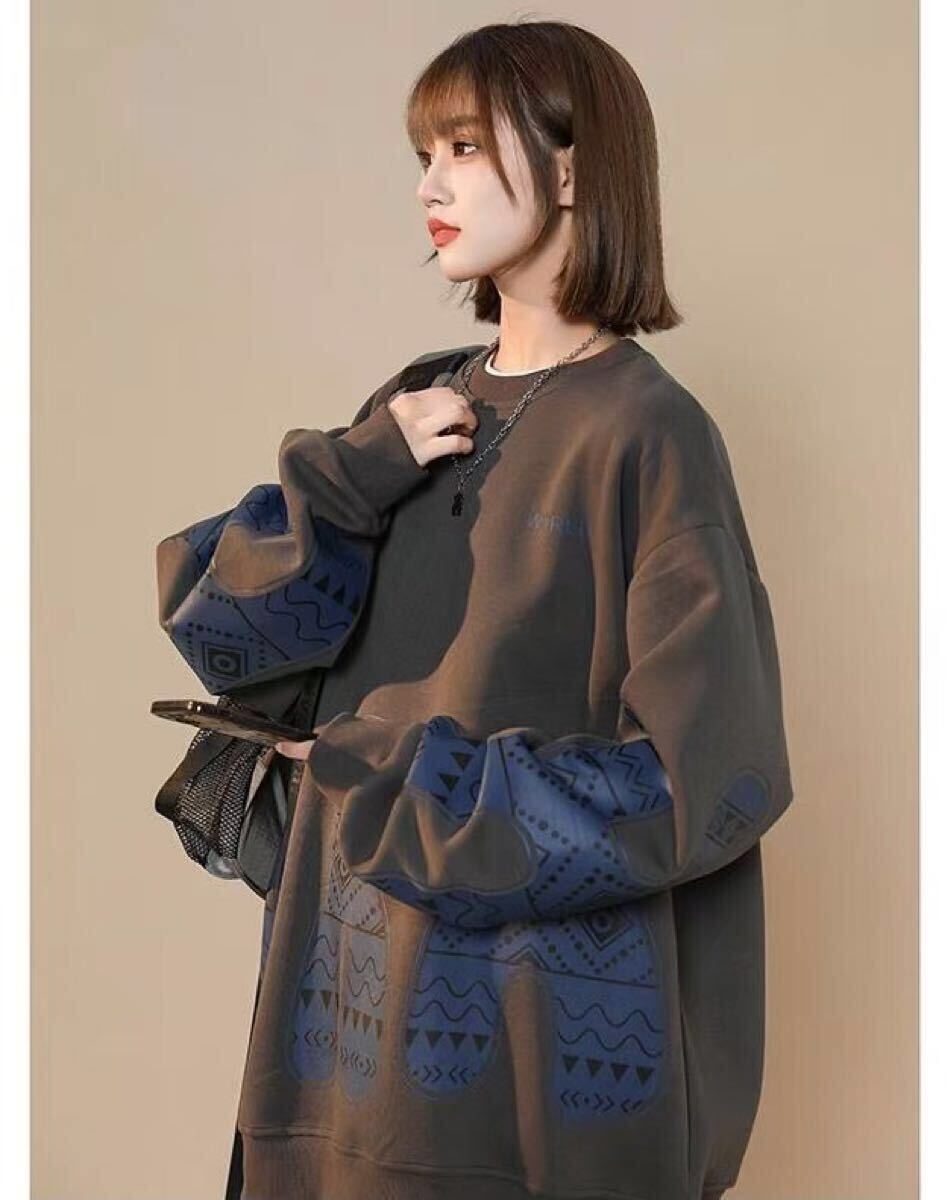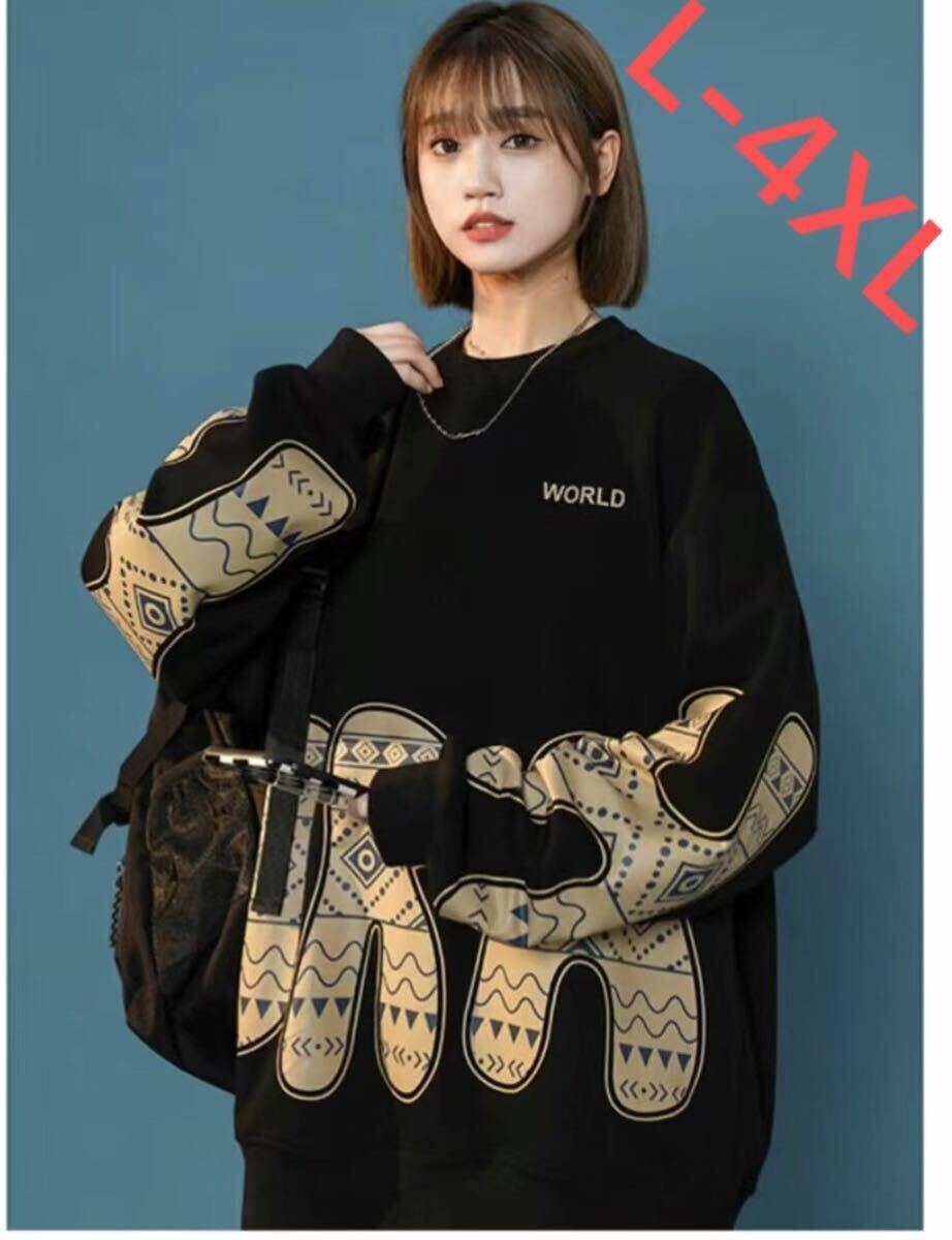 トレーナー レディース トップス 普段着 大きいサイズ プリント 春秋 秋服 春服 長袖 ゆったり 体型カバー カジュアル 大人 可愛い  LUFA270(3色L-4XL)