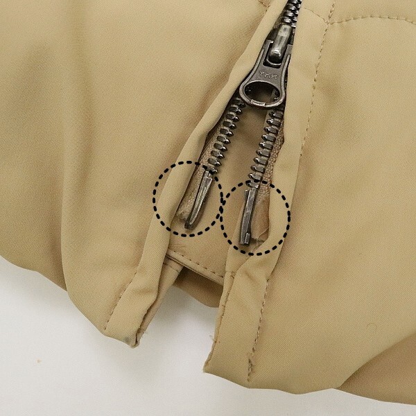 | コンディション | A~B ※クリーニング済みのお品物でございます。 ※裾のドローコードのゴムが伸びております。 表面のポケット縁のレザー部分に擦れと黒ずみ、表面の生地に若干の色ムラや薄汚れや、フロントジップエンドのテープ剥がれと多少のダメージ、裏地アームホール付近にインク汚れ、両脇、衿下、フロントジップ裏側の上部に擦れ破れやダメージがございます。 その他目立った汚れやダメージ、不具合などは特になく、まだまだご愛用して頂けます。 USEDであることをご理解の上でご入札お願いします。 ※商品の状態は弊社の基準により表記しております。 SS:新品、未使用品の商品 S:とても良い状態の商品 A:多少の使用感はありますが良い状態の商品 B:傷・汚れ等が多少ある状態の商品 C:傷・汚れ等が見受けられる状態の商品 D:かなり使用感・傷・汚れ等がある状態のジャンク商品 |