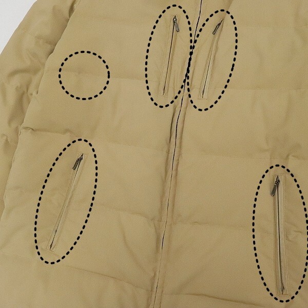 | 素材 | 表地:ポリエステル93% ポリウレタン7% 中綿:ダウン90% フェザー10% 裏地:ポリエステル キュプラ ポケット口:羊革 |