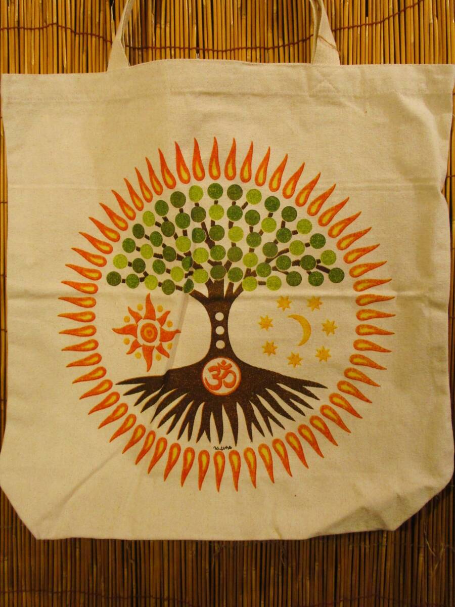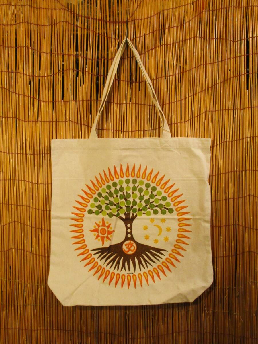 ⑤新品*男女兼用*キャンバス生地*ピースツリープリント*ビッグサイズ*トートバッグ