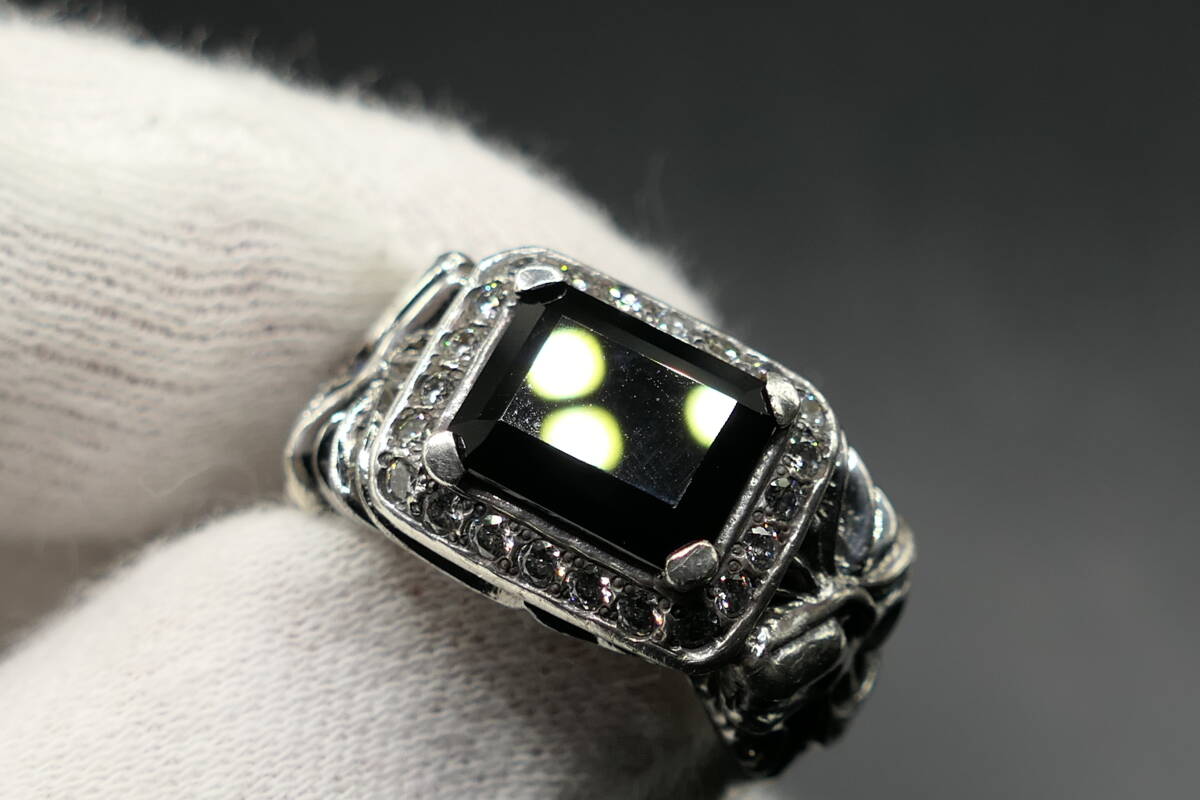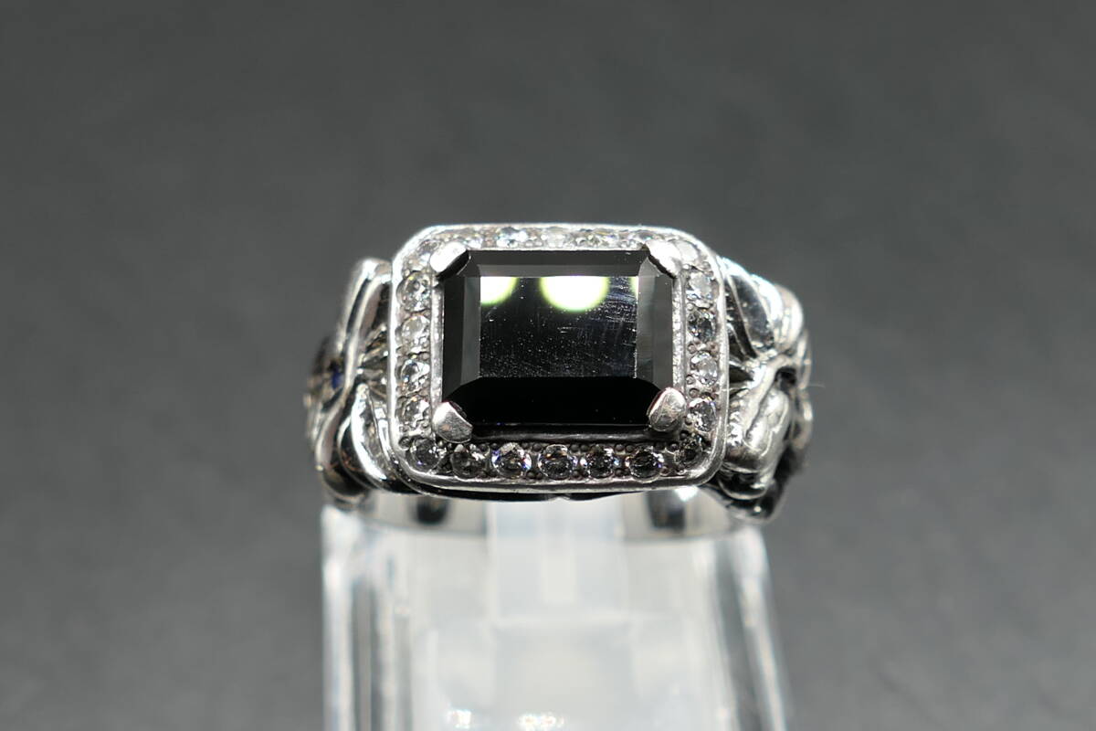 黒いオニキスとクリアのジルコニア、そしてサイドのライオンがラグジュアリーな雰囲気を醸し出しています。