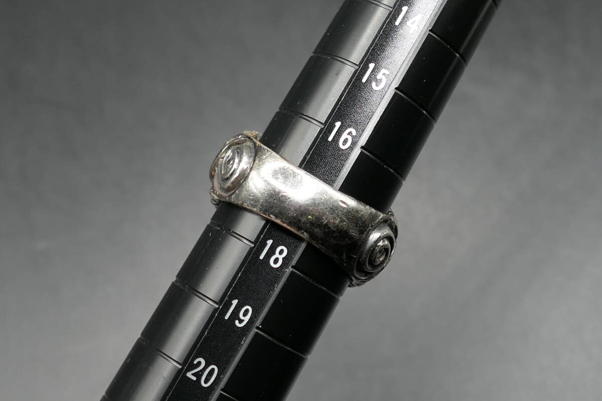 指輪の腹(着用時多に来る部分)に少々傷とコーティングの剥げがありますが、そのほか特に目立った傷や汚れはありません。