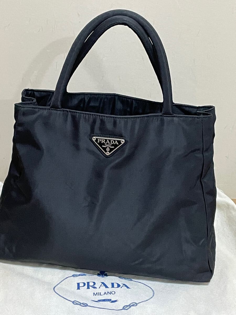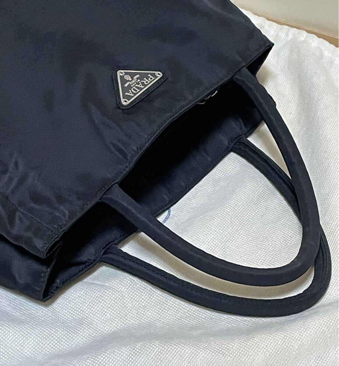 【超美品】プラダ PRADA ヴィンテージ 人気 三角ロゴプレート ナイロントートバッグ ブラック