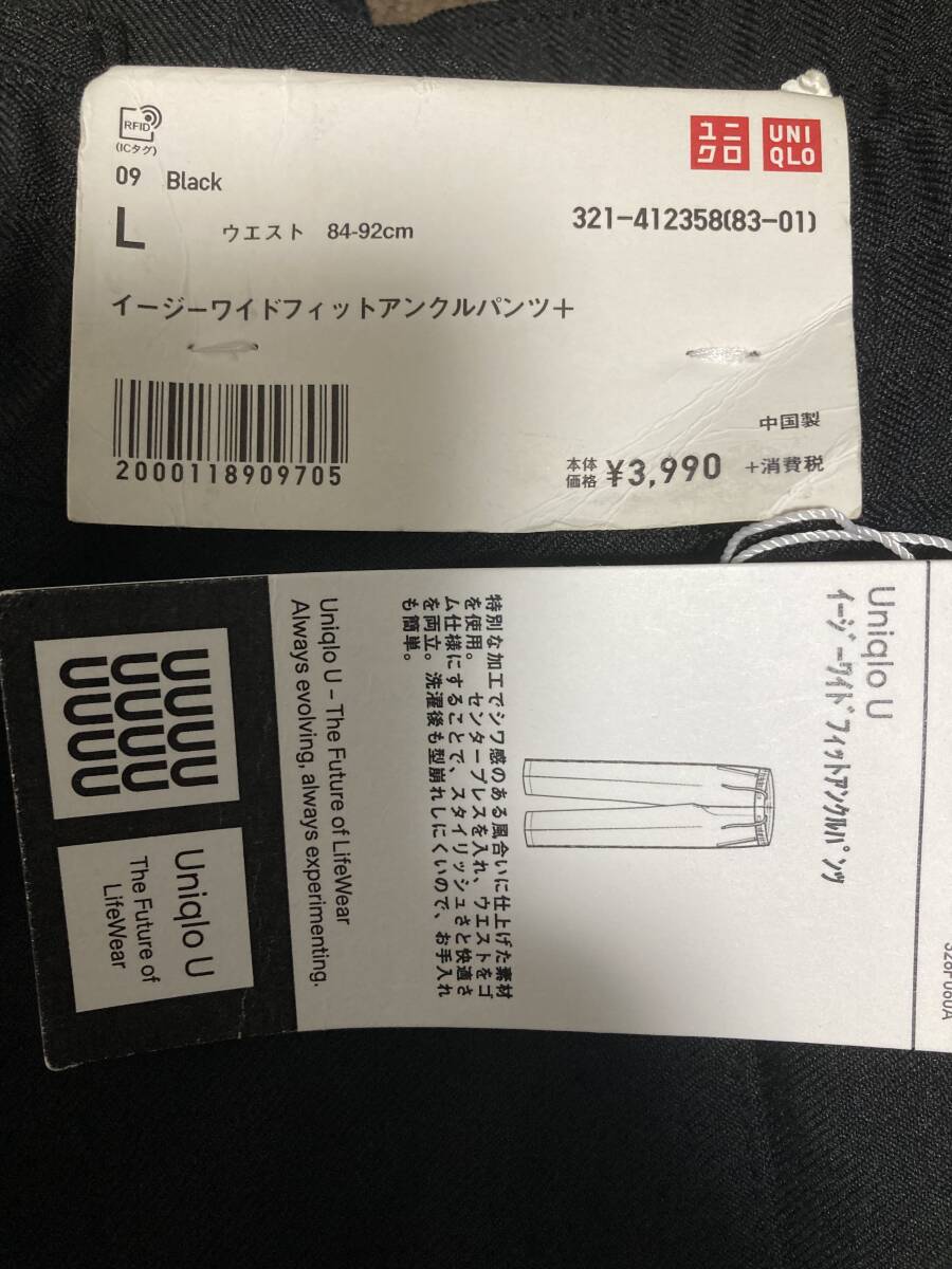UNIQLO U (ルメールコラボ)コラボ イージーワイドフィットアンクルパンツ Black L 新品未使用タグ付き 旧タグ