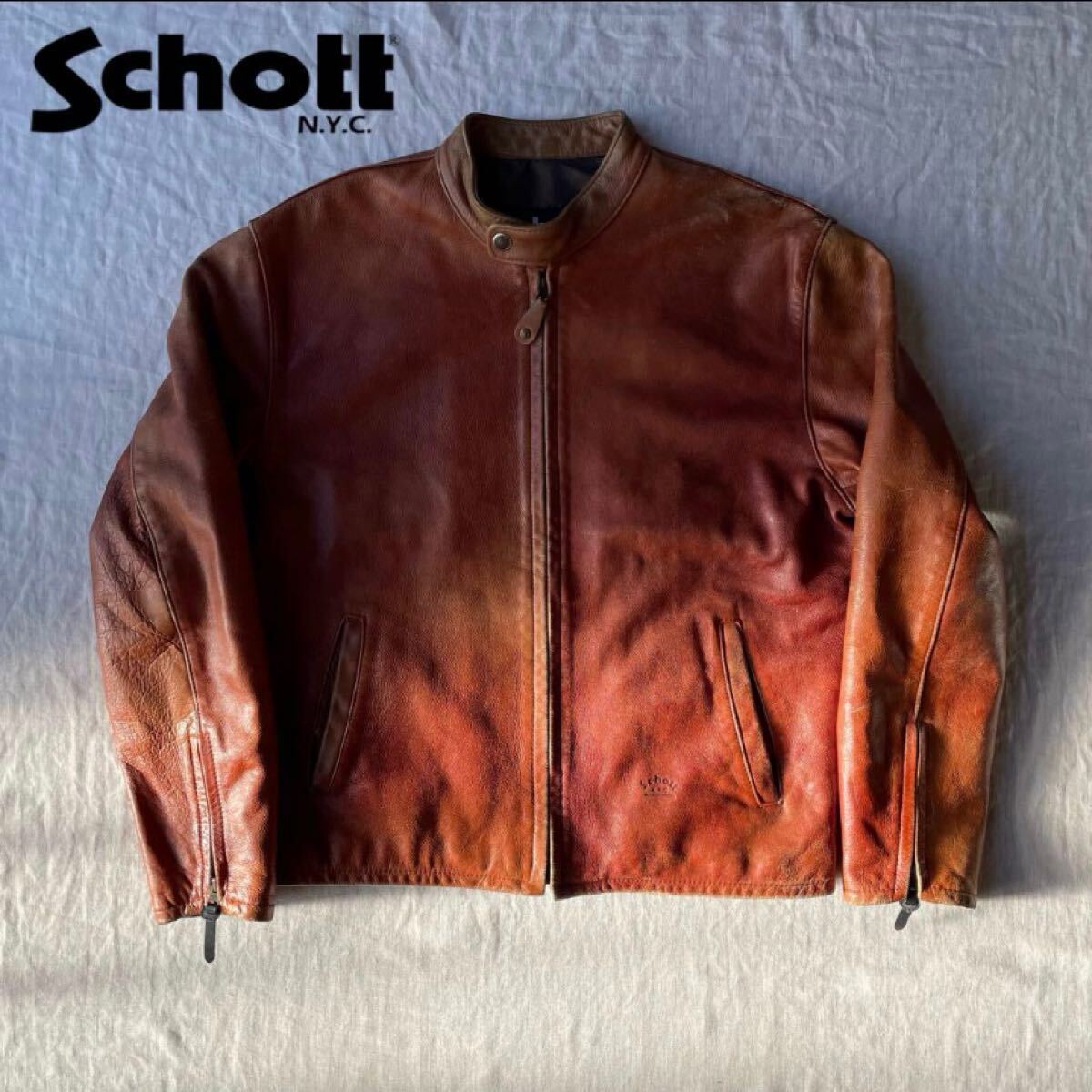 Schott641が人気ですが、革が硬いと感じる人で46.48.50のインチを着るのであれば完璧なビンテージで軽く気軽に着れます。また、641は茶色は無いので(正確にはある)変わり映えの茶色は渋いと思います。