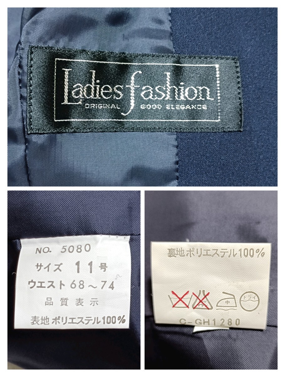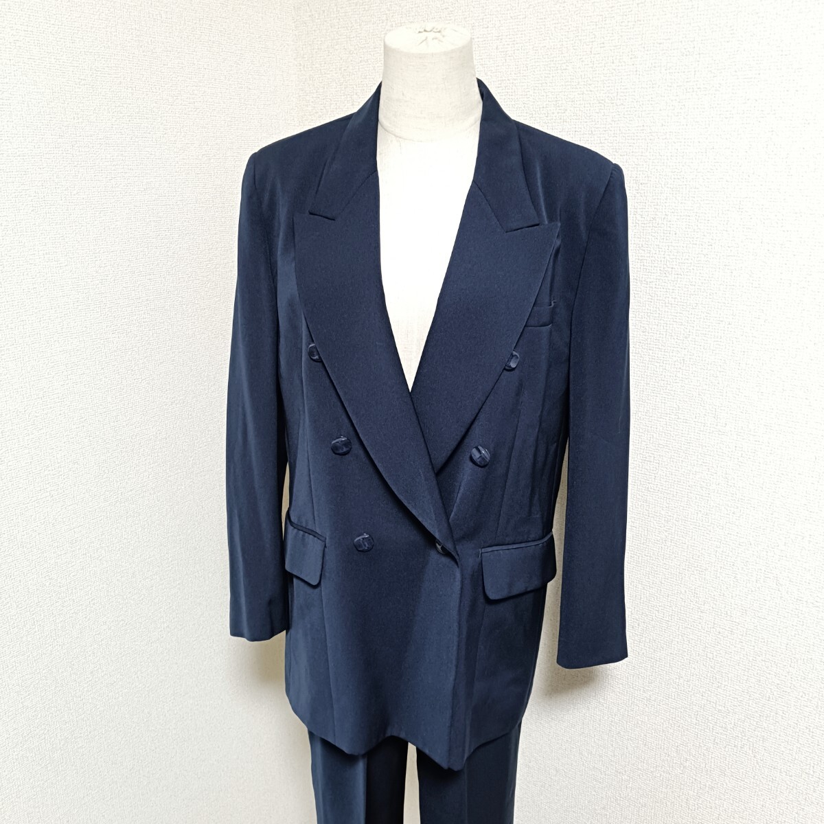 美品 スーツセットアップ ダブルブレストテーラードジャケット パンツ タイトスカート ウエストゴム ネイビー 冠婚葬祭 ビジネス レディース