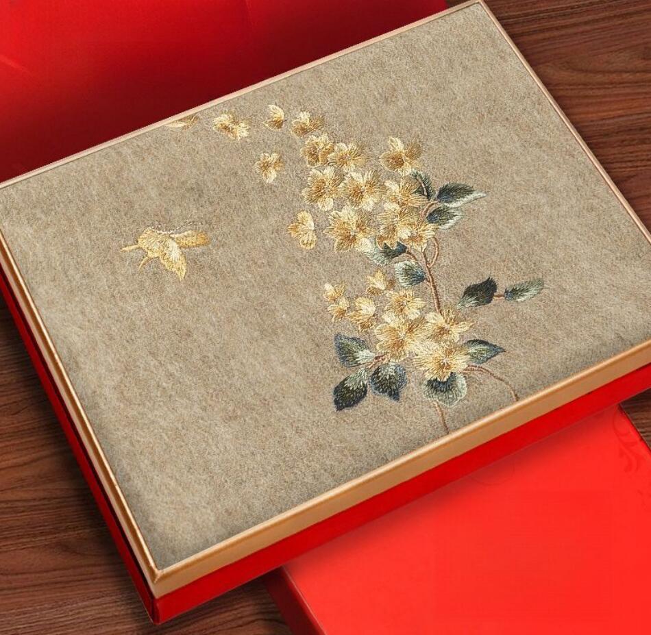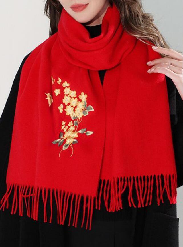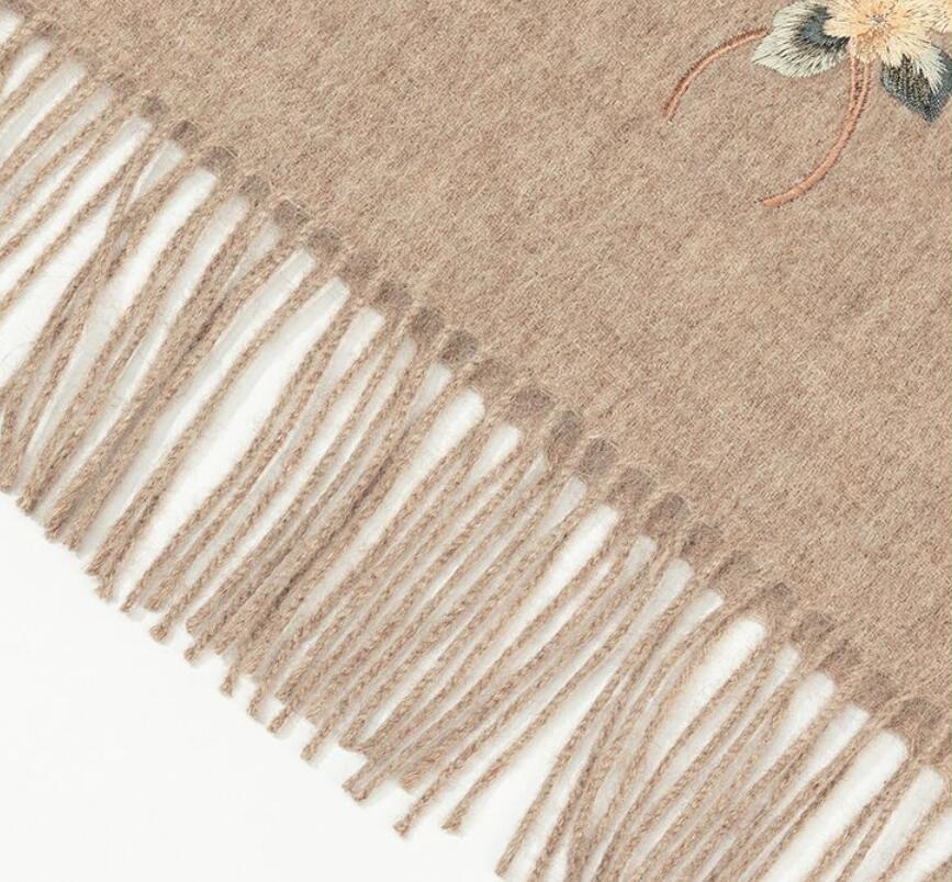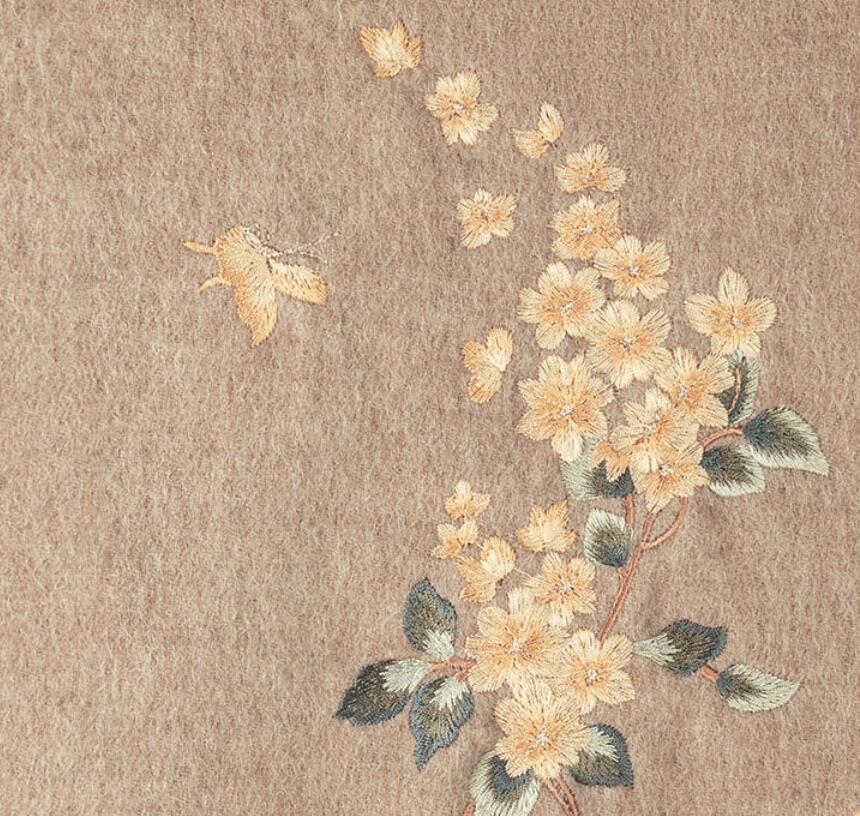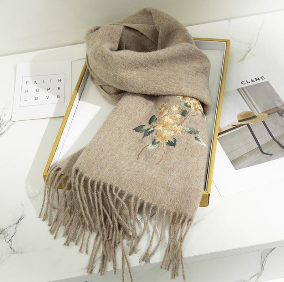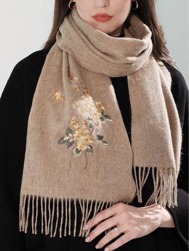秋冬~上質 大判ストール お花刺繍り カシミヤ100% 刺繍 マフラー プレゼント 高級感 ギフトラッピング カシミヤストール 誕生日~カーキ