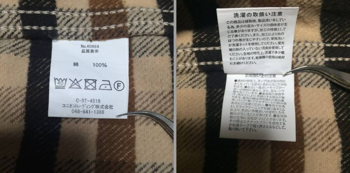 | 色・柄 | ベージュ色ベースに黒色とこげ茶色のチェック柄 | |