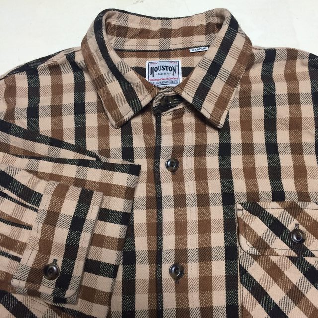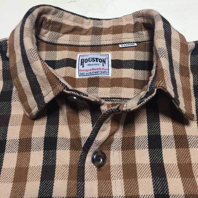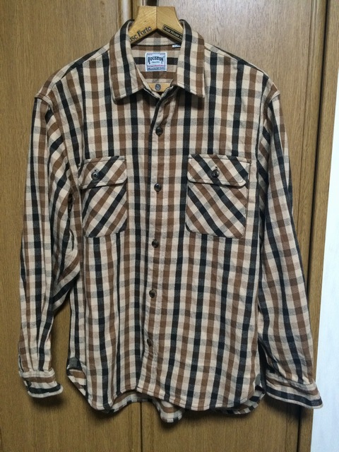 | 商品説明・状態 | 1.ほぼ新品 HOUSTONの長袖スタンダードカラーシャツで、 ベージュ色をベースに、黒色とこげ茶色のチェック柄です。 2. 胸にはフラップ付きポケットが2ヶ所付いています。ボタンは全て猫目タイプです。 3.ほぼ新品につき襟汚れ、褪色、スレなどはありません。サイズが合って、デザインを気に入られた方いかがですか。 | |