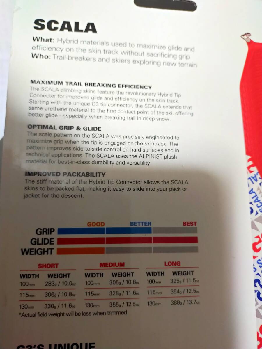 G3 クライミングスキン 幅100mm 長さ168-184cm対応