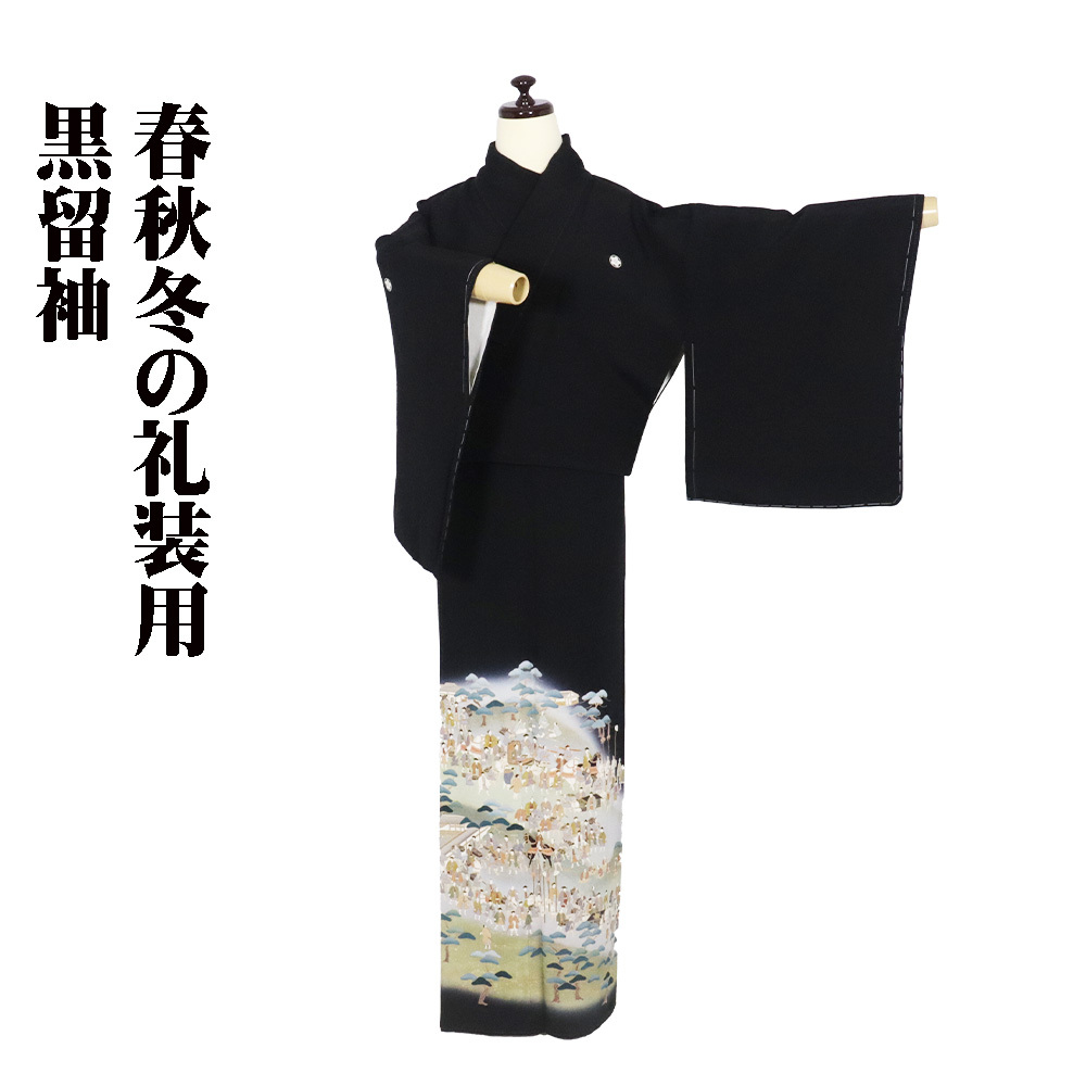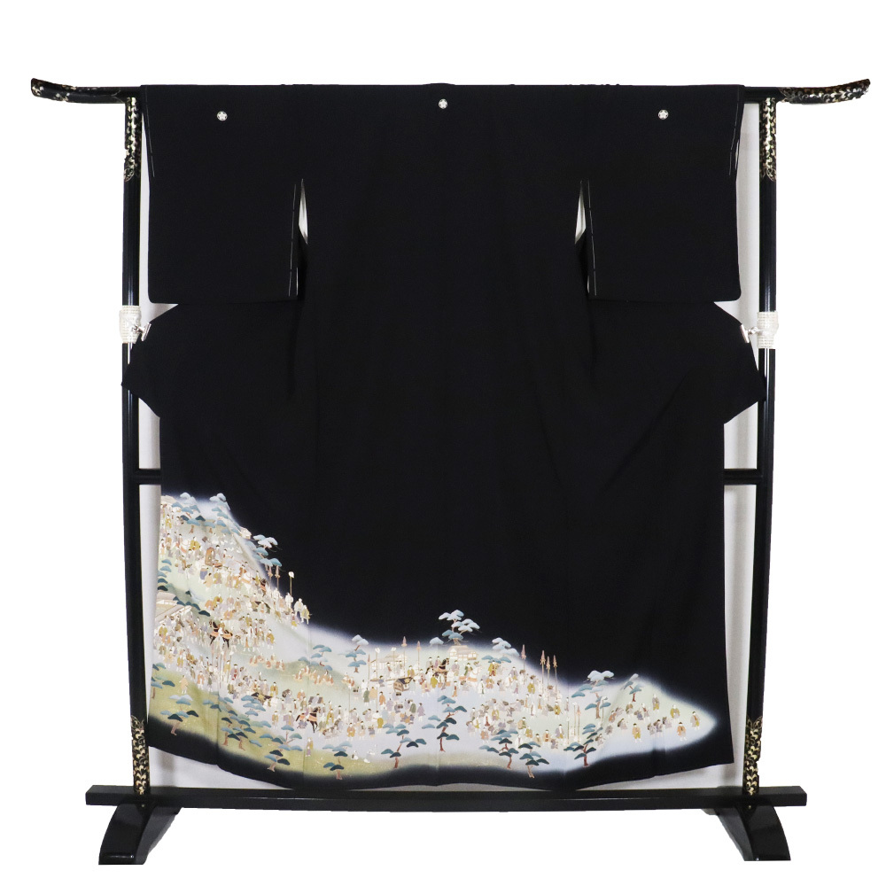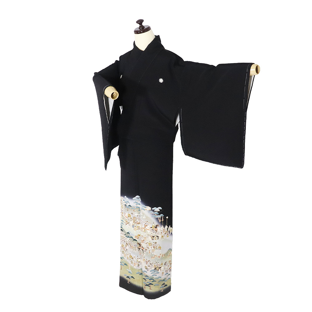 友禅 黒留袖 袷 丹後縮緬地 大名行列 162 広襟 比翼仕立て しつけ付き | |