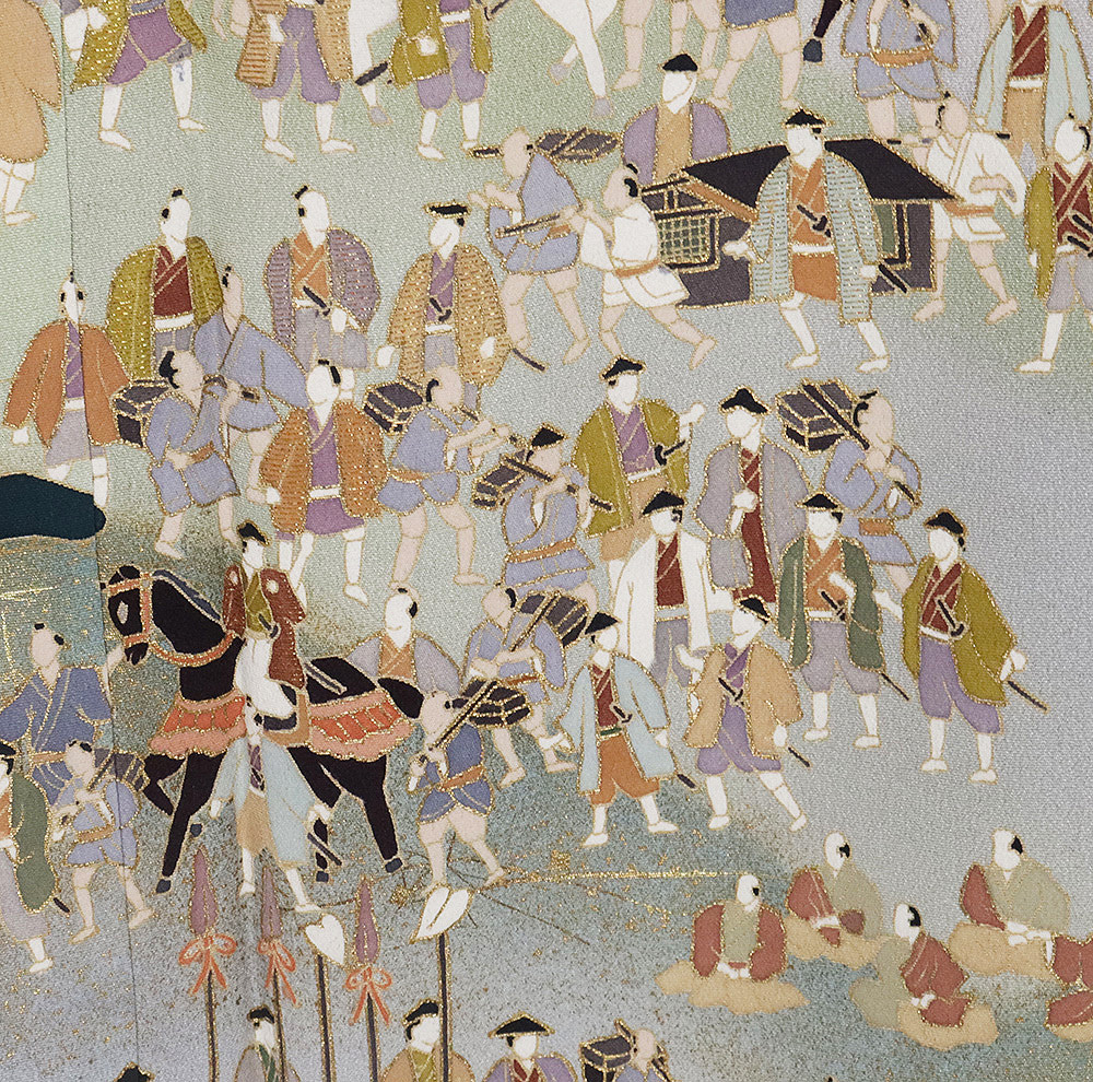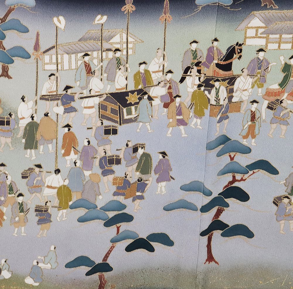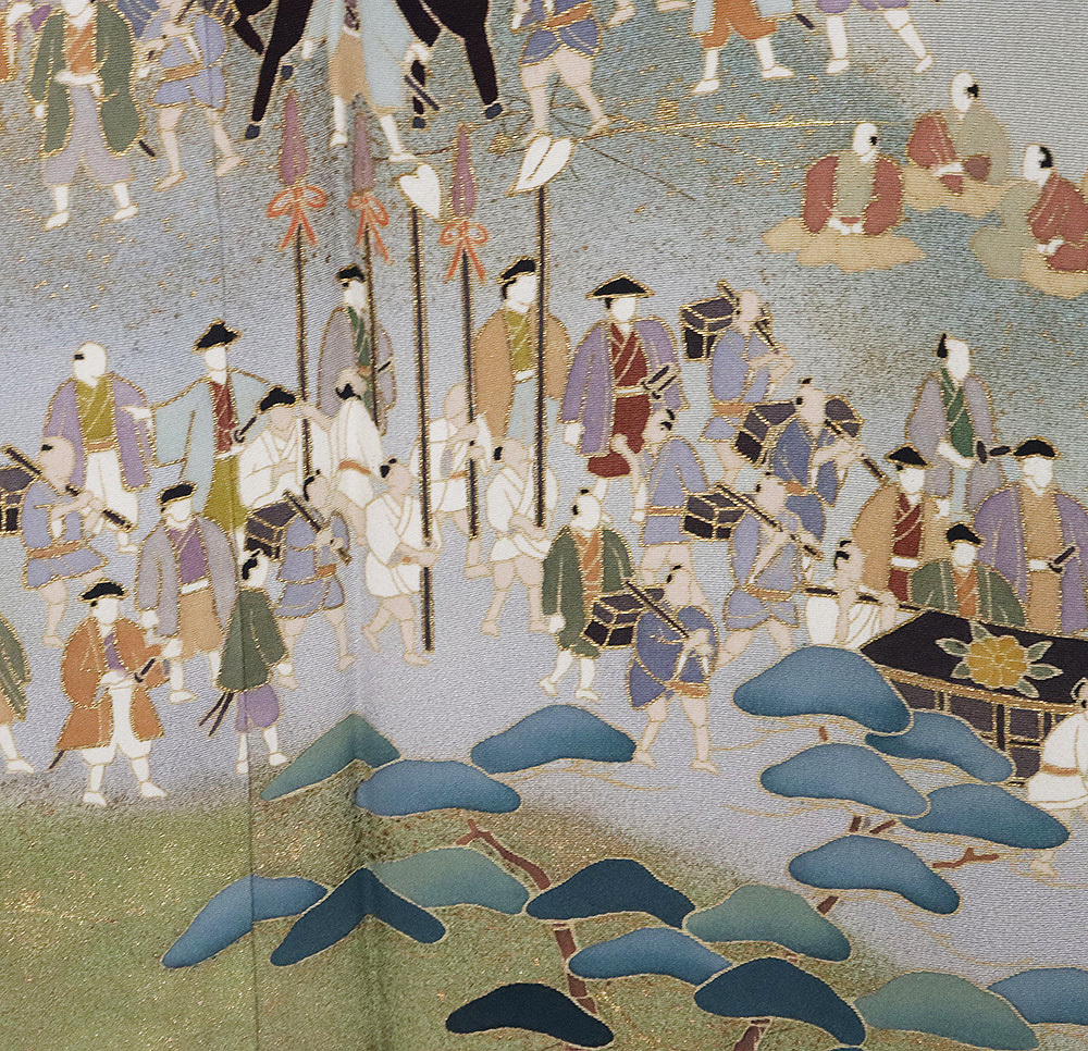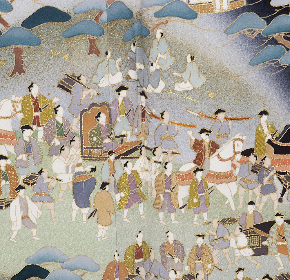 友禅 黒留袖 袷 丹後縮緬地 大名行列 162 広襟 比翼仕立て しつけ付き | |